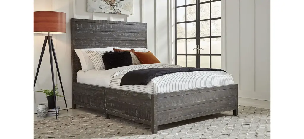 The Townsend Low-Profile King Bed provides shallow top drawers that are perfect for storing delicate items with the map drawer effect repeated with faux parting rails on large lower drawers.