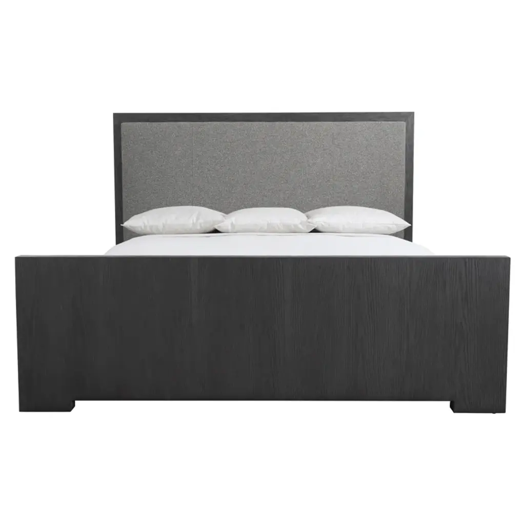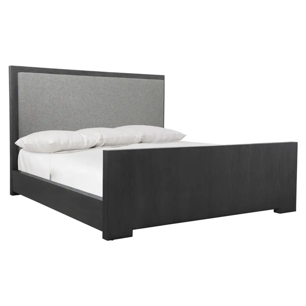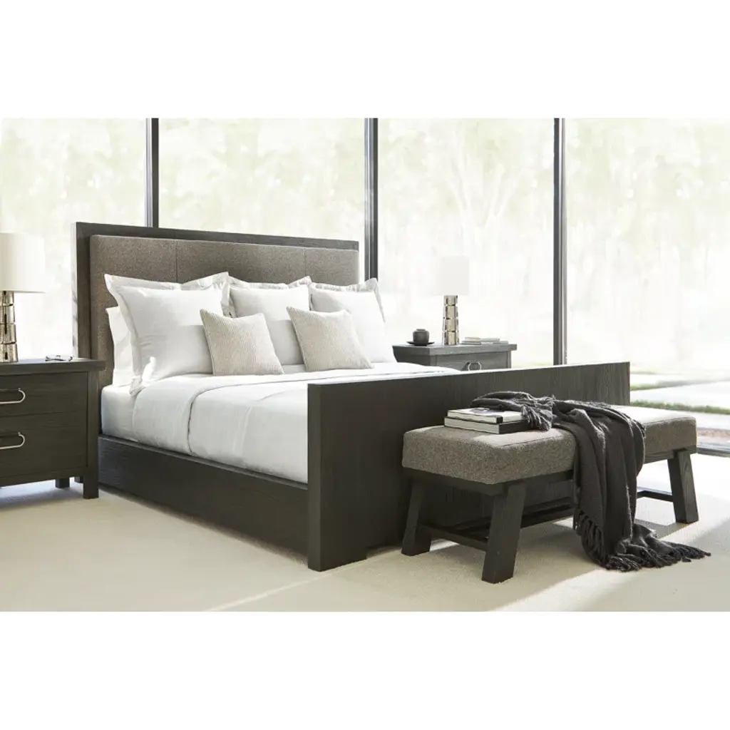 The Trianon panel bed makes a bold and striking statement with a thick-cut, heavily wire-brushed pine frame. The bed is finished in the darker L'Ombre, including the side panels and impressive footboard. An upholstered inset panel in the headboard adds an element of softness and comfort.