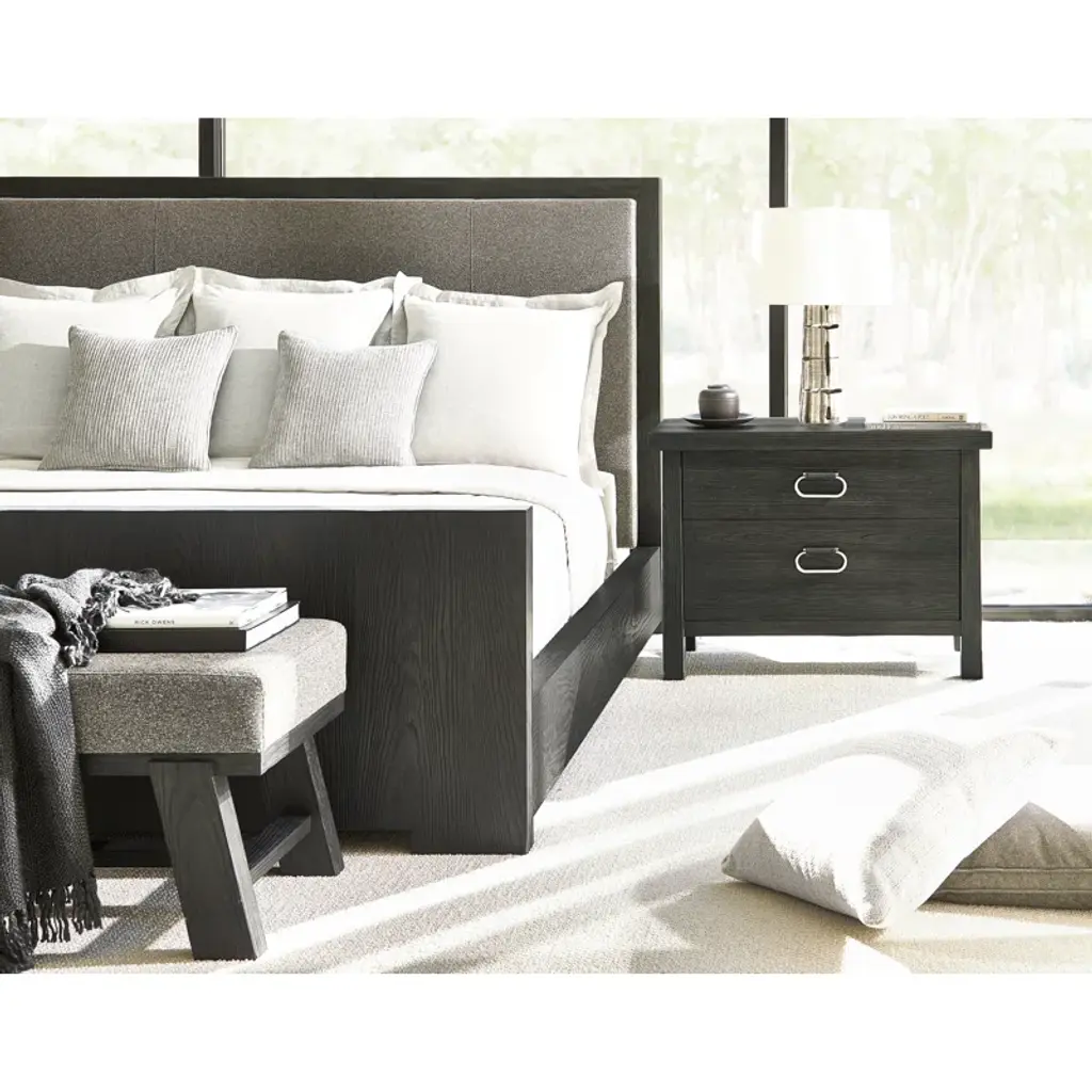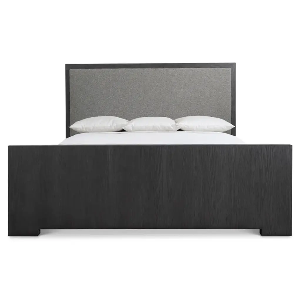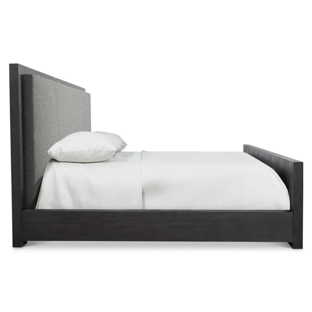 The Trianon panel bed makes a bold and striking statement with a thick-cut, heavily wire-brushed pine frame. The bed is finished in the darker L'Ombre, including the side panels and impressive footboard. An upholstered inset panel in the headboard adds an element of softness and comfort.