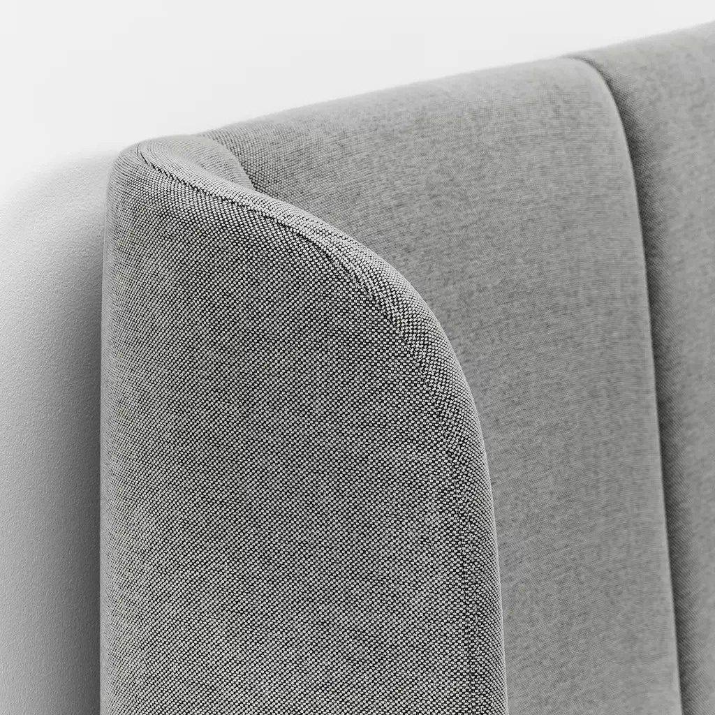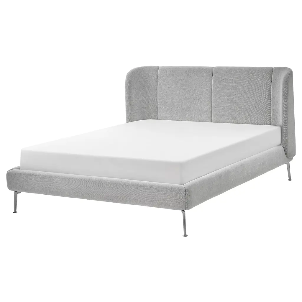 TUFJORD Upholstered bed frame - Tallmyra white/black Full. The curved headboard is great for cozy, cocooning moments, helping you to unwind and relax in bed. The headboard is comfortable to lean against ⎼ ideal for lazy mornings in bed drinking coffee and reading. Center support beam included.