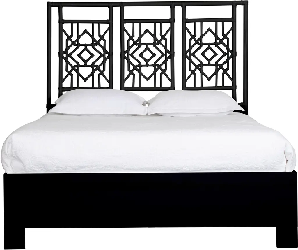 A timeless design, this classically styled bed features a Rattan headboard with a Maple Bed Frame. The Rattan headboard is hand-wrapped with Rawhide Bindings to add a beautiful contrast and strength. The Maple Bed Frame, which accepts a box spring and mattress, is built in the USA. The Rattan headboard easily attaches to the Bed Frame. Each bed is custom made and finished to order. This bed is an artistic centerpiece and will make a statement in any bedroom.