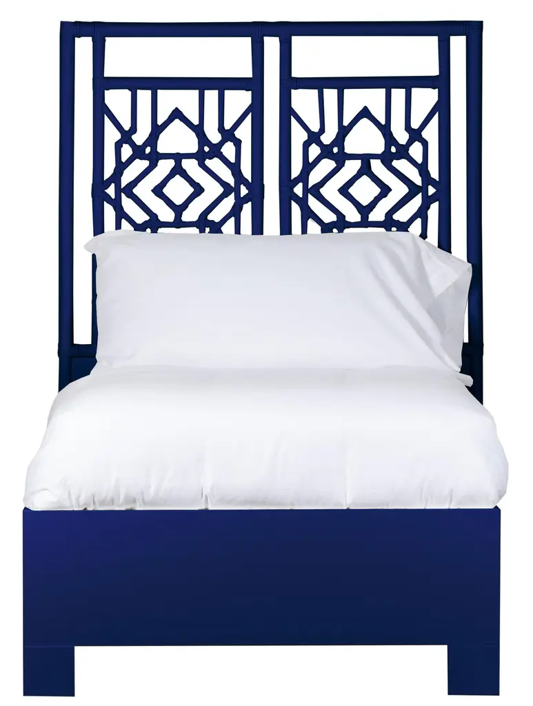 A timeless design, this classically styled bed features a Rattan headboard with a Maple Bed Frame. The Rattan headboard is hand-wrapped with Rawhide Bindings to add a beautiful contrast and strength. The Maple Bed Frame, which accepts a box spring and mattress, is built in the USA. The Rattan headboard easily attaches to the Bed Frame. Each bed is custom made and finished to order. This bed is an artistic centerpiece and will make a statement in any bedroom.