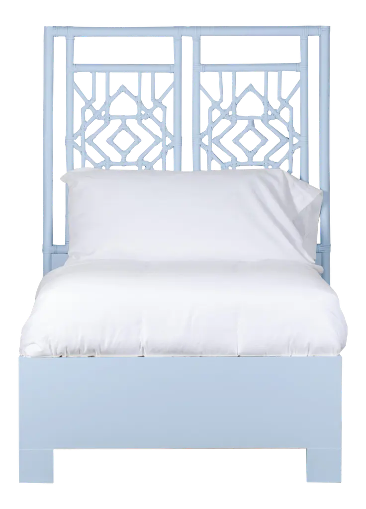 A timeless design, this classically styled bed features a Rattan headboard with a Maple Bed Frame. The Rattan headboard is hand-wrapped with Rawhide Bindings to add a beautiful contrast and strength. The Maple Bed Frame, which accepts a box spring and mattress, is built in the USA. The Rattan headboard easily attaches to the Bed Frame. Each bed is custom made and finished to order. This bed is an artistic centerpiece and will make a statement in any bedroom.