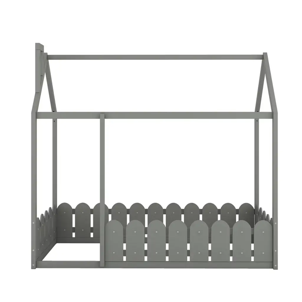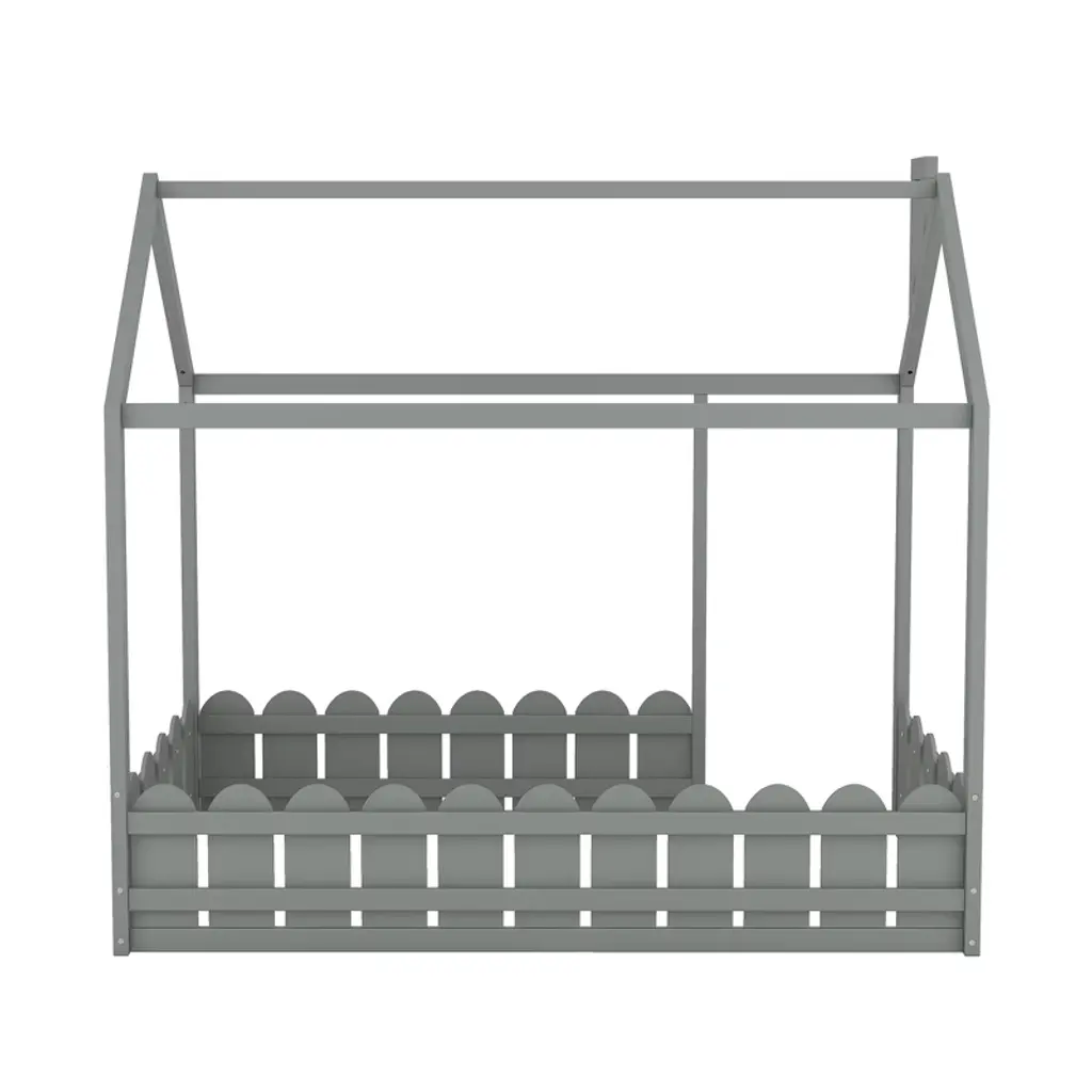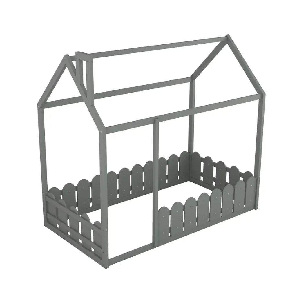 Product Features [Playhouse Design]: Featuring roof and fence, this unique bed creates a fun and adorable space that not only serves as a comfortable sleeping area but also doubles as a space for your kids to play and have fun.[A Better Sleeping Environment]: Thanks to the semi-enclosed space, your kids will have their own sleeping space that affords a comforting atmosphere for better sleep while not sacrificing air circulation.[Superior Quality]: The twin size house bed is constructed with a sturdy pinewood frame that can enhance stability and durability. Slats are not included — you need to prepare box springs or foundations.[Dimensions]: Overall bunk bed dimension: 78.7” x 41” x 70.5” (L x W x H). Weight capacity: no limit. This wood house bed will come in 1 package with clear instructions and hardware. Description Featuring roof and fence, this bed doubles as a semi-enclosed play place perfect for kids to study, watch TV or explore their imaginations. With fence and a sturdy pine frame, this bed offers a safe space for your kids to get a good nights sleep. Weight & Dimensions Overall Product Dimension: 78.7"L x 41"W x 70.5"HDetail Product Dimension: Please refer to the Size imageNumber of Package: 1Package Dimension: Please refer to the SpecificationOverall Product Weight: 77 LBSPackage Weight: Please refer to the SpecificationWeight Capacity: No limitRecommended Mattress Thickness: 6" - 8" Specifications Product Type: House BedSize: TwinMaterial: Plywood + MDF + PinewoodBox Spring Required: YesNumber of Slats: Slats are not includedAssembly Required: Yes