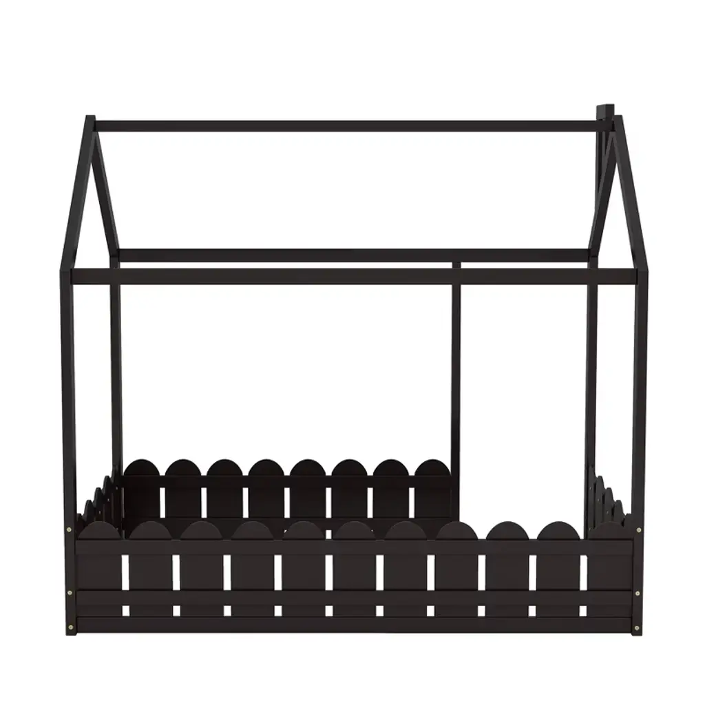 Twin Size Wood House Bed Frame With Fence For Kids,teens