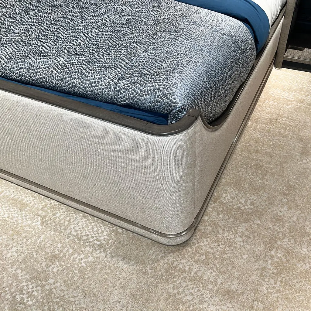 This elegant piece features graceful curves and slender maple and stainless steel accents, combining to create a design that exudes timeless elegance. The bed is upholstered in a luxurious fabric, providing a soft and welcoming touch.The upholstered winged headboard offers ample space and comfort. The welting trim adds a subtle yet stylish detail, highlighting the bed's luxurious feel. Dimensions:US King - 81" W x 86.25" D x 56" H