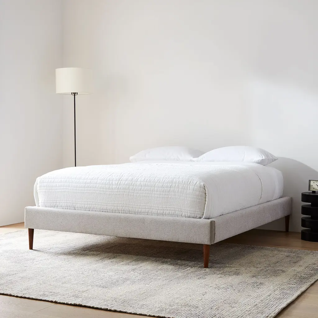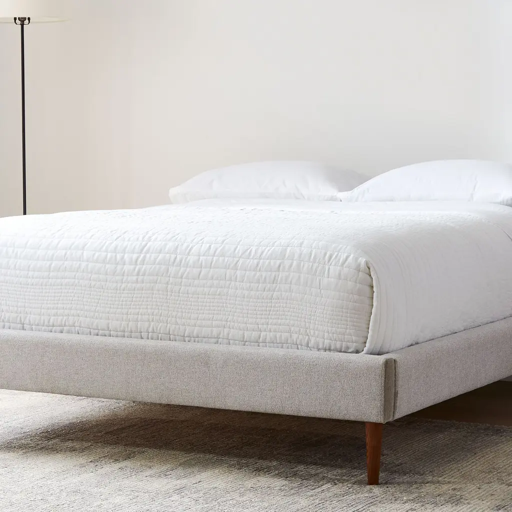Tall solid wood legs for an airy feel. Expertly tailored in your choice of fabric. Contract Grade for unmatched durability.