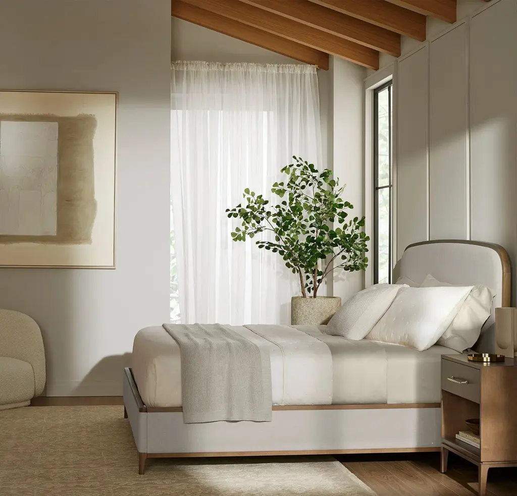 Create the softest sanctuary with this architecturally inspired bed. It’s artisan made and upholstered with a performance fabric to stand the test of time. The gentle arch of the headboard and rounded edges are a Boll & Branch feature that nods to softness. Here, the rounded corners in the head- and footboards offer a sense of comfort that anchors your entire bedroom.