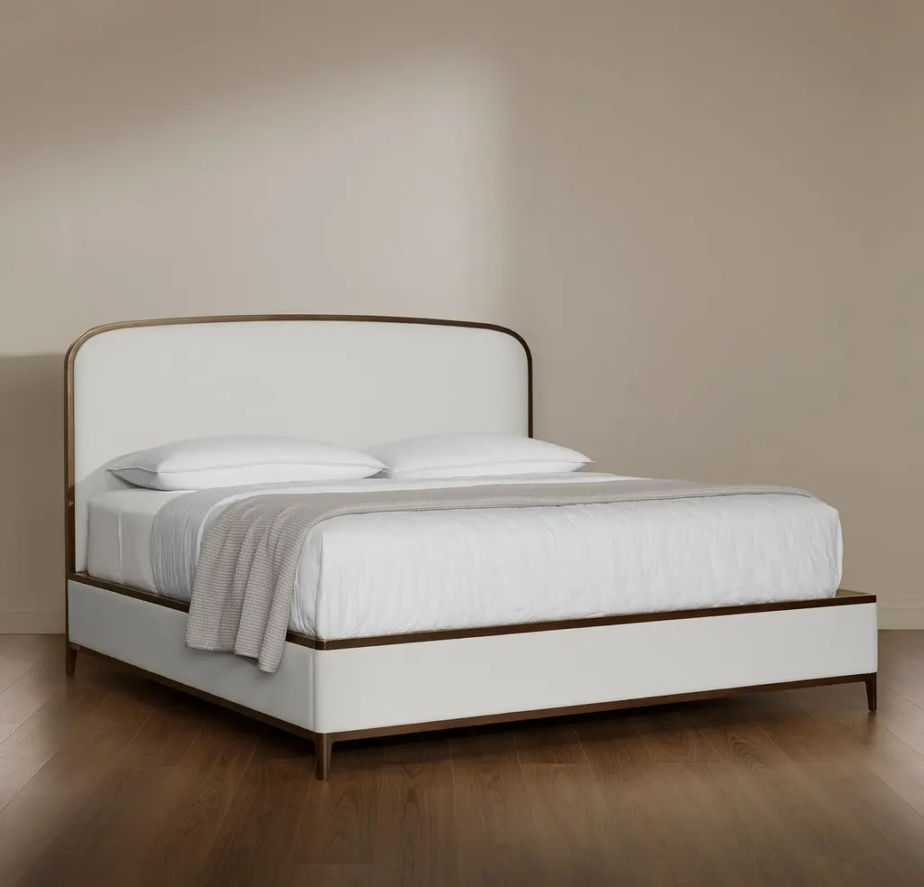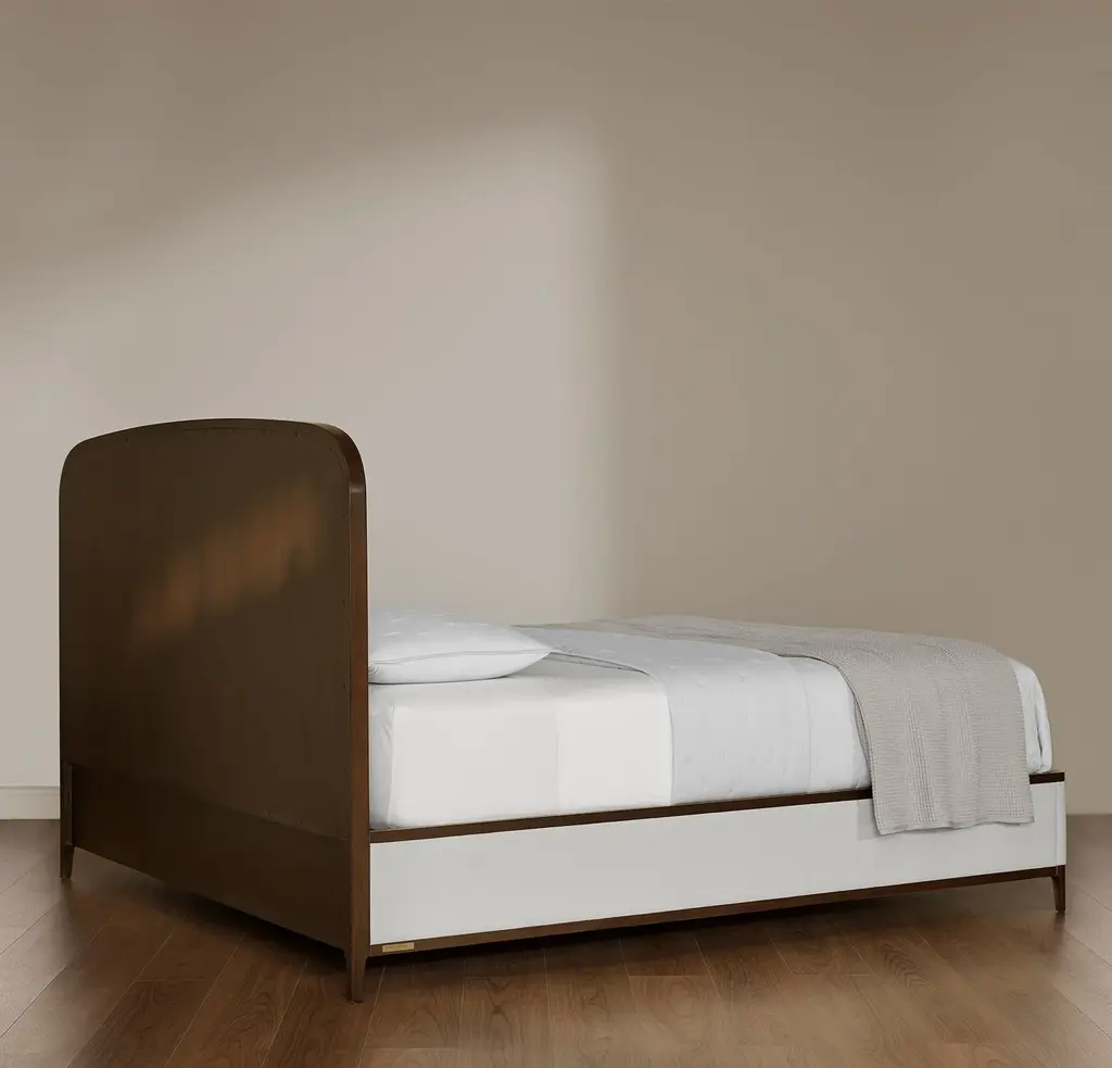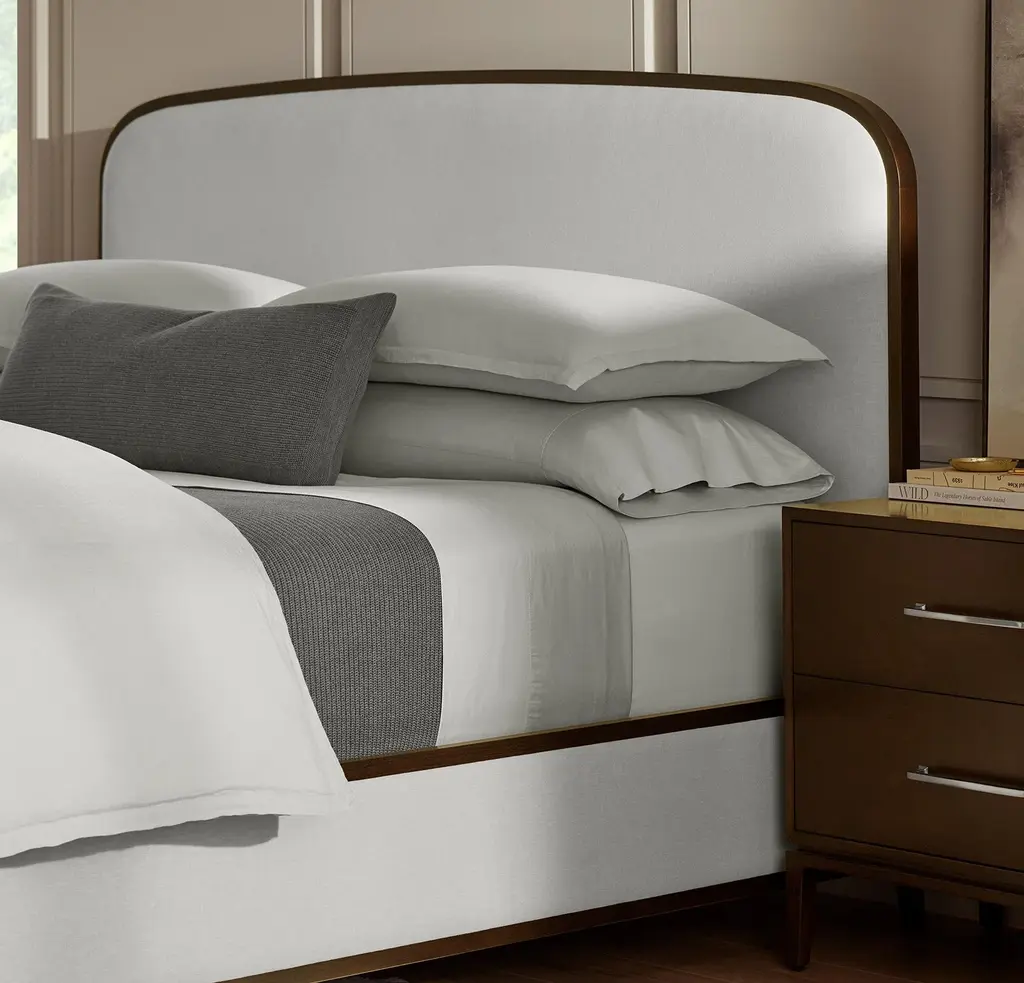 Create the softest sanctuary with this architecturally inspired bed. It’s artisan made and upholstered with a performance fabric to stand the test of time. The gentle arch of the headboard and rounded edges are a Boll & Branch feature that nods to softness. Here, the rounded corners in the head- and footboards offer a sense of comfort that anchors your entire bedroom.