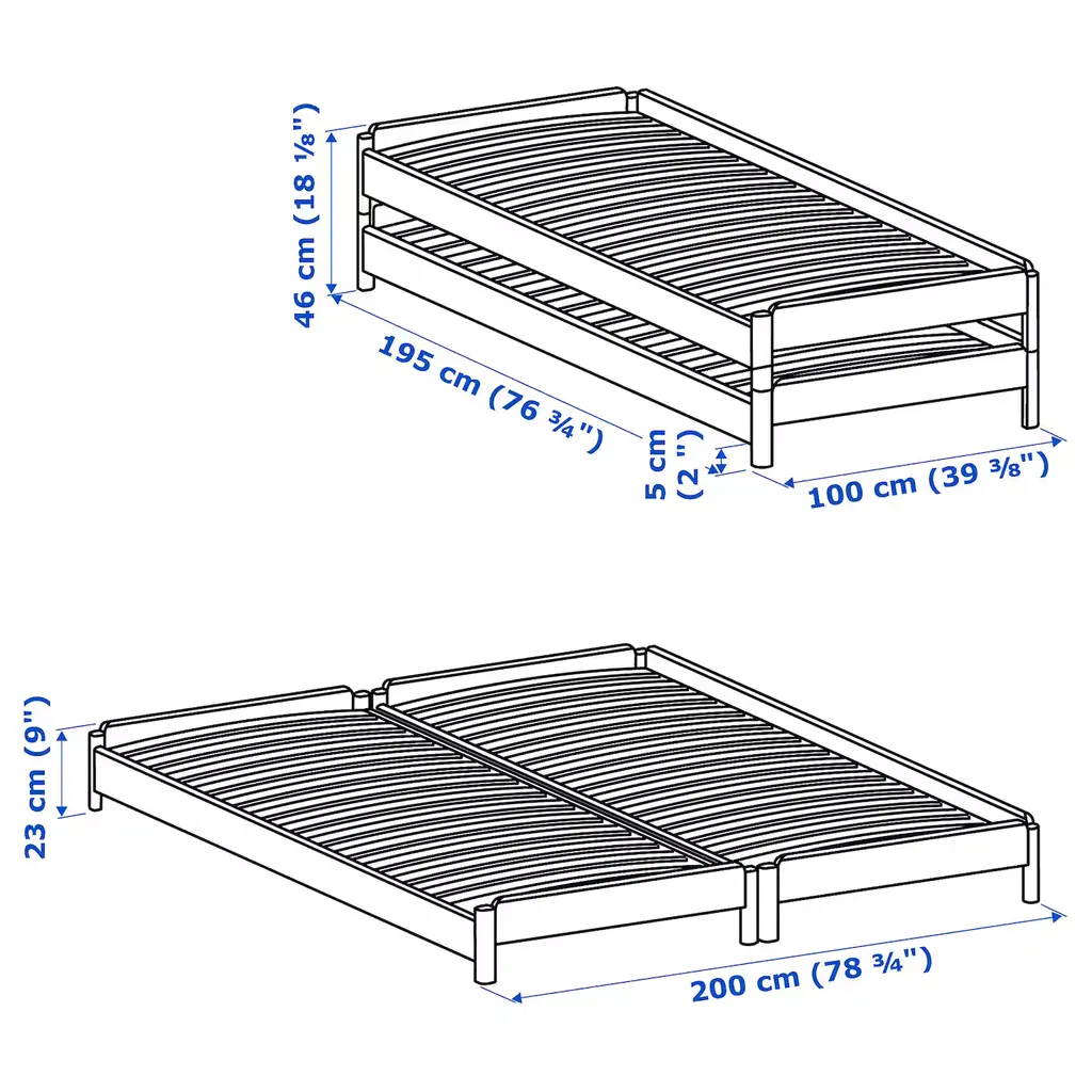UTÅKER Stackable bed with 2 mattresses - pine/Ågotnes firm Twin. You can quickly convert the stacked beds into a double bed, twin beds or corner sofa. The lightweight frames are easy to lift and move. Made of solid wood, a hard-wearing natural material, that creates a soft and natural feel.