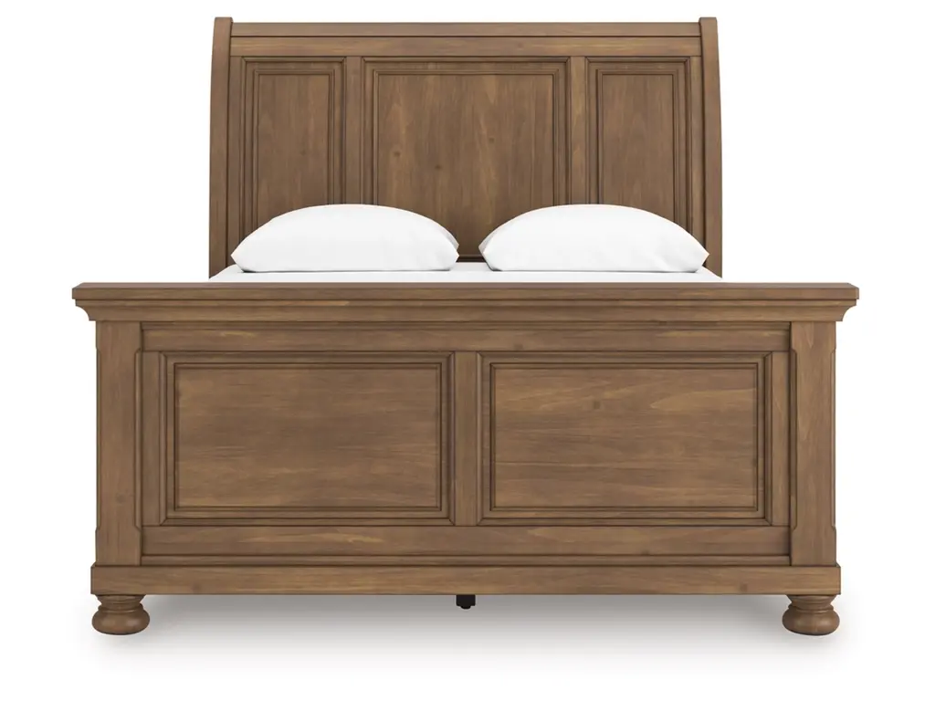 A relaxed take on casual traditional design, the Vandenmore queen sleigh bed strikes a comfy pose with a classic sensibility. Its timeless design and chestnut brown wood tone create a welcoming retreat tailored to your laid-back lifestyle. Now there’s a bed with staying power.
