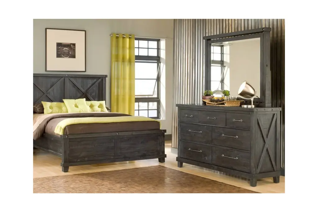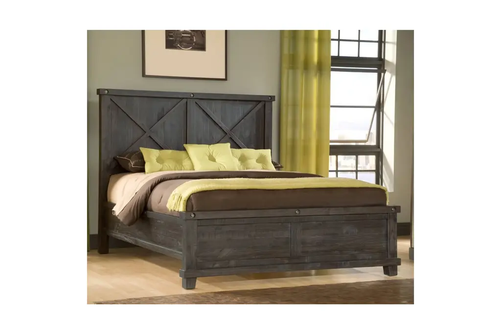 The Vantage Wood Back Bed brings industrial chic design to a whole new level. The Vantage Collection takes its cues from 20th Century utilitarian "factory furniture" design. It brings a contemporary edge to your home decor. The design is packed with character. The Vantage Collection features rough-hewn planks, exposed bolts, hammered metal accents, and cross braces. The Vantage Wood Back Bed also features a unique barn door headboard. The Vantage requires a box spring or other foundation for the mattress.