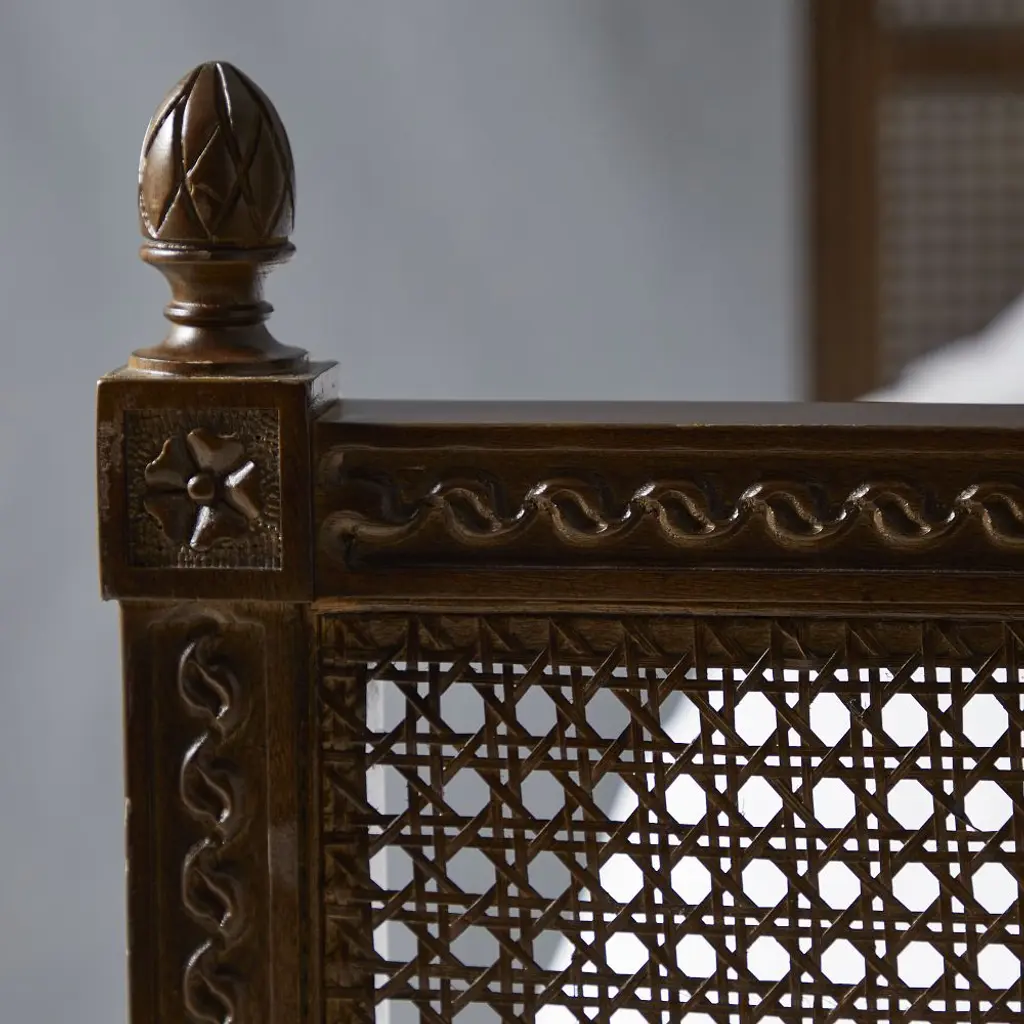 Wild herbs. Dappled sun. The sweeping sea. In FSC®-certified solid wood with airy cane and carved wood details, this heirloom bed conjures the remembrance of things past.