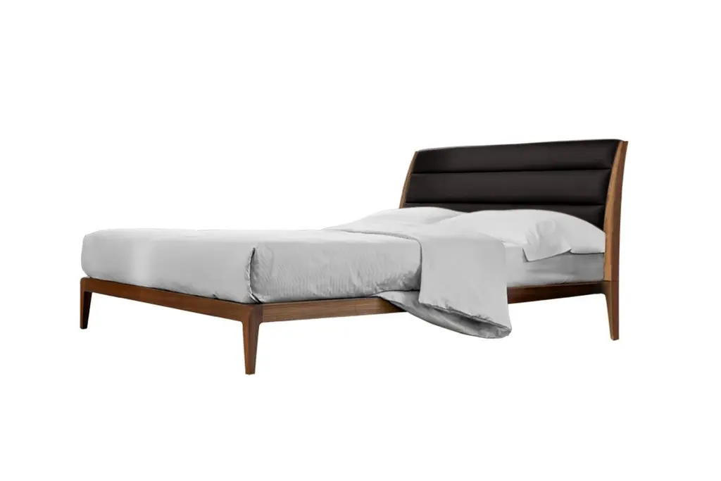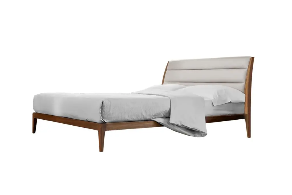 The Verso Nord solid wood bed is well proportioned, simple and elegant. Comfort is guaranteed by the padded headboard embellished with visible stitching. The structure is made of solid walnut wood with acrylic finish. A timeless piece, fully hand-finished to combine design and high quality Italian craftsmanship.