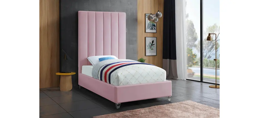 Via Bed is true upscale feel and epitomizes fine living while channel tufting along the headboard keeps the padded material inside plump and aloft so it cradles your body while you sit up in bed to watch TV or read. Metal legs bring this platform bed up off the floor, allowing clearance below for cleaning and adding to its svelte contemporary profile.