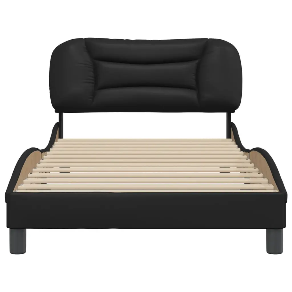 This modern bed frame combines style and functionality, perfect for any bedroom where simple elegance is the goal. Its black faux leather finish adds a touch of posh and fits in with all sorts of decor, creating a stylish vibe whether you're resting, reading, or just kicking back after a long day. Sleek Black Finish: The stylish black look upgrades any bedroom, offering a chic vibe that mixes well with other furniture. It’s a straightforward design where the color makes it easy to fit into contemporary spaces. Smart Storage: There’s plenty of space cleverly hidden under the frame, perfect for stashing bedding, clothes, or personal items, keeping your room neat. This feature is great for making the most of your space without losing style. Quality Material: Made with stain-resistant faux leather that looks sharp and is a breeze to clean, this bed frame is built to last. The durable materials keep it looking good and are easy to maintain. Cozy Headboard: The cushioned headboard offers support for reading or lounging. It’s not just nice to look at but also practical for daily use, making it a comfy spot to relax. Versatile Use: Perfect for singles or couples, measuring 39.4 in by 74.8 in, comfortably fitting one person. It’s a great addition to any modern living space, whether it’s a small bedroom, an apartment, or a guest room.