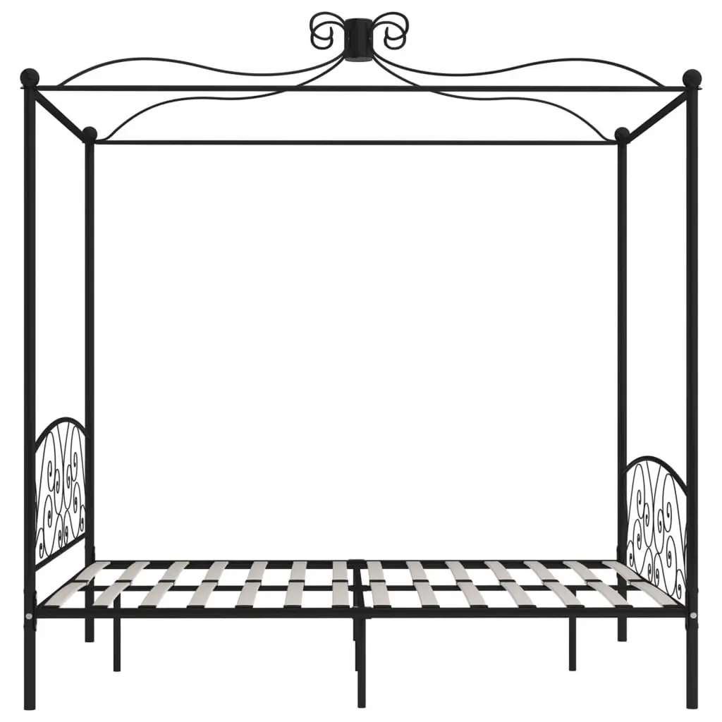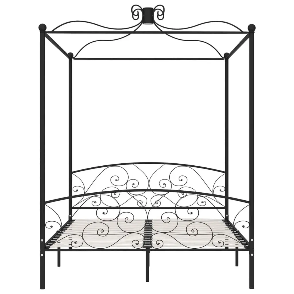 This striking traditional black metal canopy bed frame is an elegant focal point for any bedroom. Its solid design and classic good looks give it a timeless appeal, blending well with many decor styles while providing strong support for a peaceful night's sleep. Classic Design: The timeless style of this bed frame adds elegance to any bedroom space, making it a must-have for your home.Sturdy Structure: Built with tough metal materials, this bed frame gives you long-lasting support, holding up to 440 lbs.Adaptable Functionality: Made for flexibility, it fits a bed canopy or mosquito net, great for setting a snug mood or getting protection.Easy Care: The smooth metal surface is quick to clean, helping you keep your bedroom tidy without fuss.Spacious Dimensions: With its ample 63 x 79 in space, this bed frame fits well in standard bedrooms, offering a lovely retreat for two.