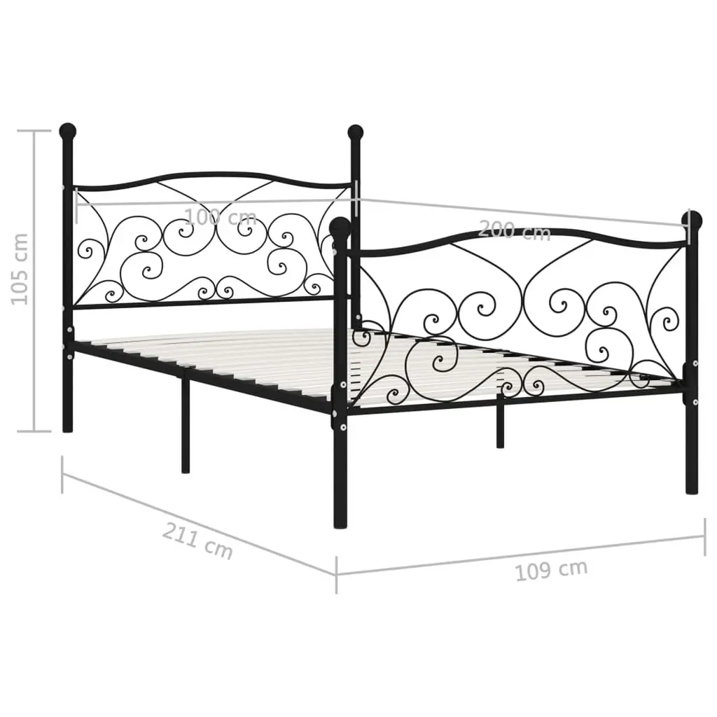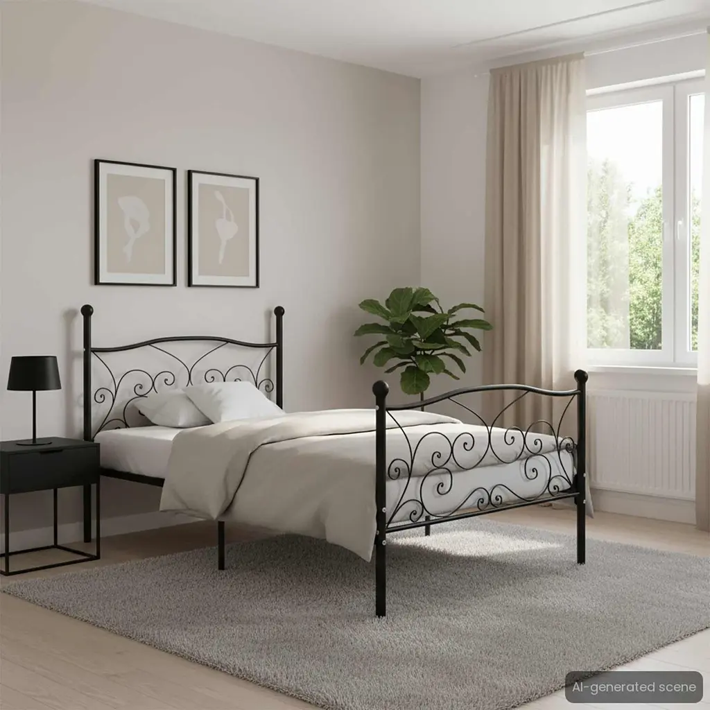 This black metal bed frame gives a sleek and modern vibe to your bedroom. It’s a brilliant option for a single bed, showcasing a stylish, traditional design that brings comfort and support. Timeless Design: The classic look of this bed frame fits in perfectly with different decor styles, boosting the aesthetic appeal of any bedroom. Ideal for those who like traditional design but appreciate modern perks. Strong Build: Made from tough metal and plywood, this bed frame provides brilliant support and stability, ensuring a reliable spot for rest. The materials promote longevity, so you can count on restful nights for years. Easy Maintenance: Thanks to its smooth surface, keeping the bed frame clean is easy. A quick wipe with a damp cloth is all it takes to keep it looking fresh, giving you more time to enjoy your space instead of cleaning it. Compact Dimensions: At 39.4 x 78.7 in, this bed frame is made for single use, making it ideal for smaller or guest bedrooms. Its practical size optimizes space while keeping it stylish. Thoughtful Design Features: The slatted base adds great ventilation for your mattress, while the built-in frame makes assembly quick and easy. It’s crucial for a solid foundation that supports good sleep.