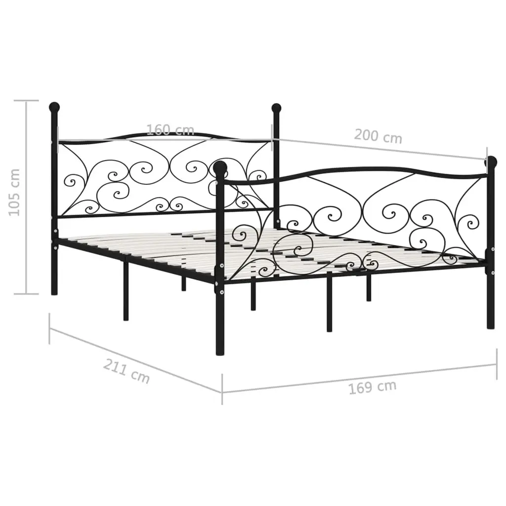 Vidaxl Bed Frame Black Metal, Plywood Full Classic/traditional