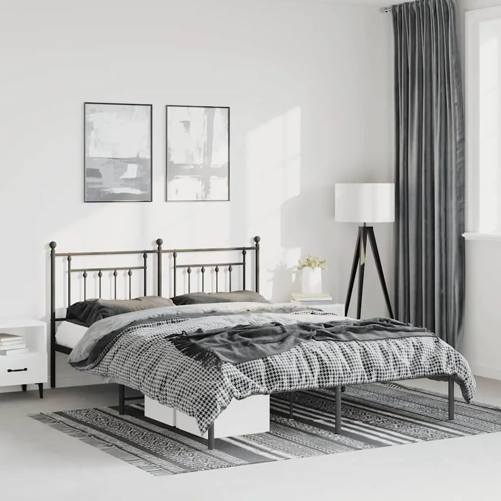 This Metal Bed Frame with Headboard merges a classic design with modern features, perfect for any bedroom. Made from tough powder-coated steel, it offers stability and elegance with its smooth finish, creating a cozy space for a good night's sleep or a relaxing time. Ample Storage: With a generous sleeping area of 53.1 x 74.8 in, this bed frame fits up to 2 people comfortably, making it a great fit for any home.Stylish Headboard: It has a nicely finished headboard that adds character and enhances your bedroom’s decor.Durable Material: Made from robust powder-coated steel, this frame is built to last yet has a refined look.Sleek Finish: The black finish not only looks stylish but also protects against scratches and wear.Indoor Use Only: This bed frame is meant for indoor use only, keeping it in good shape for ages.