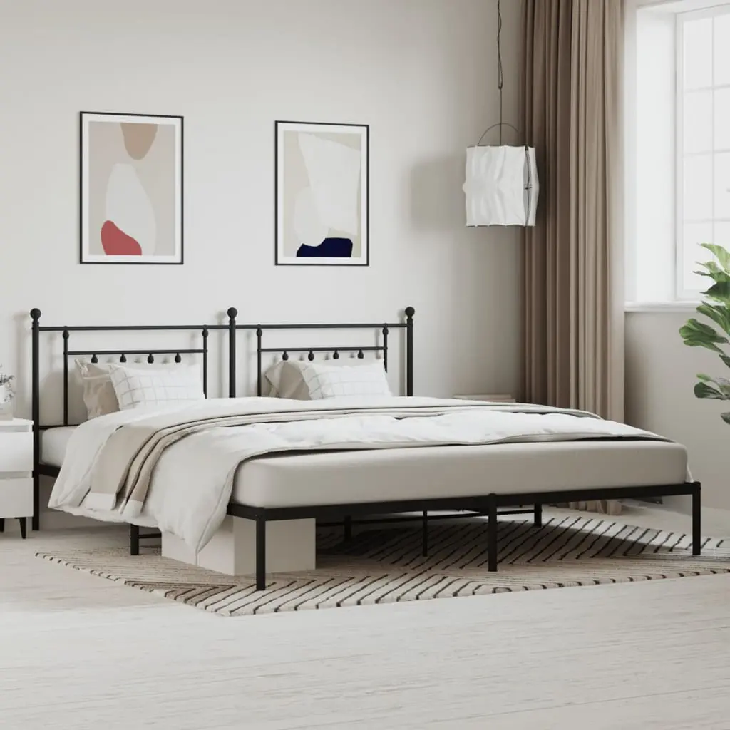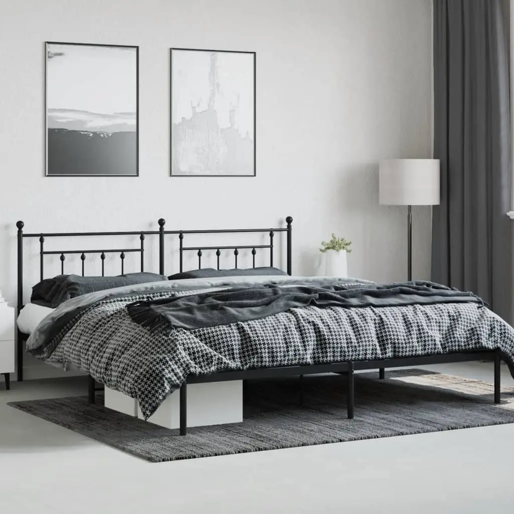 This industrial metal bed frame with a headboard mixes tough durability and stylish design, making it a great centerpiece for any modern bedroom. Made from top-quality powder-coated steel, it has a trendy black look that fits in well and lasts ages. Strong steel build for stability and durability – perfect for daily use while looking good.The classic design adds a touch of elegance, blending with any style.Fits a roomy 78.7 x 78.7 in mattress for restful nights, ideal for couples or those who enjoy space.The headboard not only looks great but also adds comfort and support when you're sitting up in bed.Simple assembly process, you only need a screwdriver to get it set up quickly.