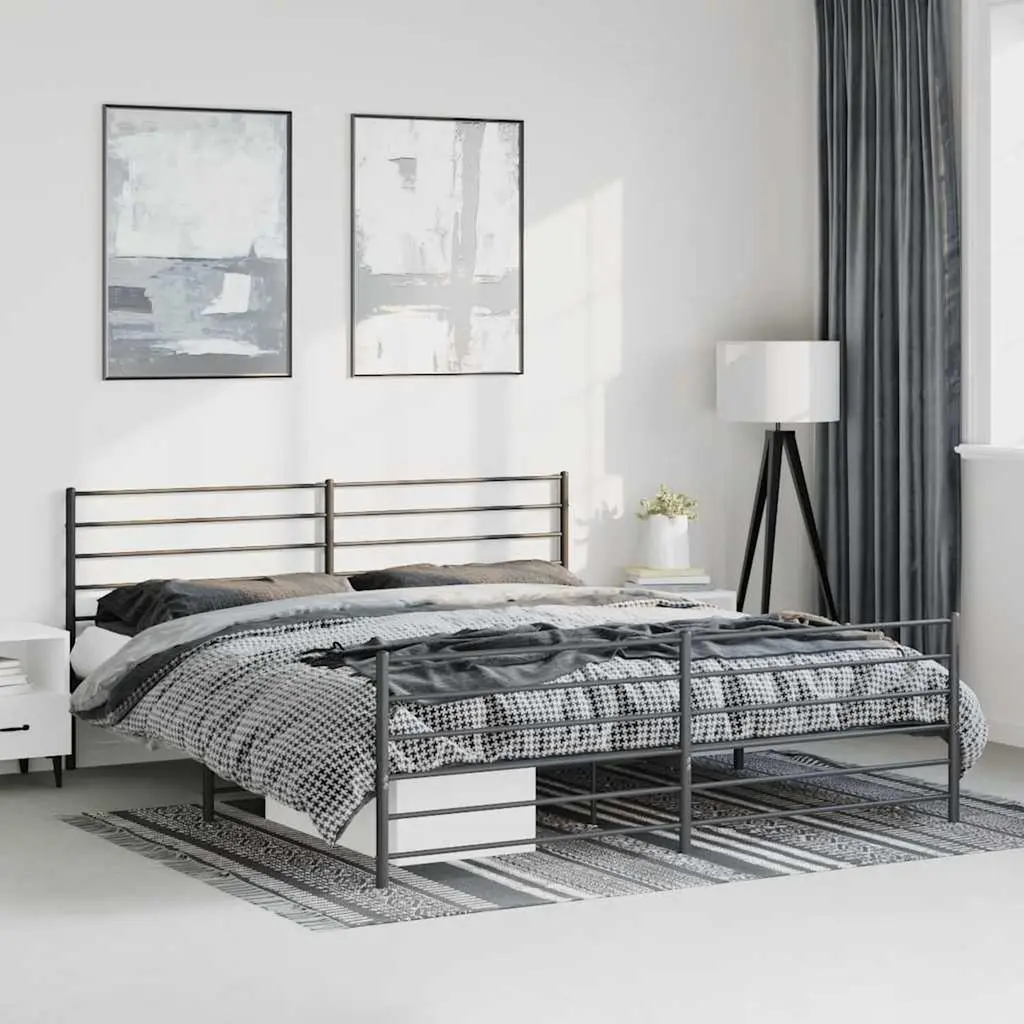 Vidaxl Bed Frame Black Powder-Coated Steel Double Bed Frame