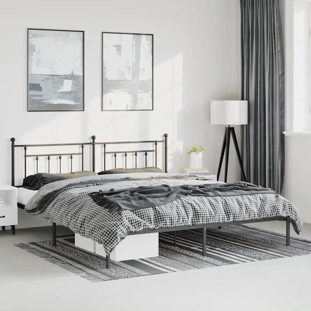 Vidaxl Bed Frame Black Powder-Coated Steel Double Bed Frame
