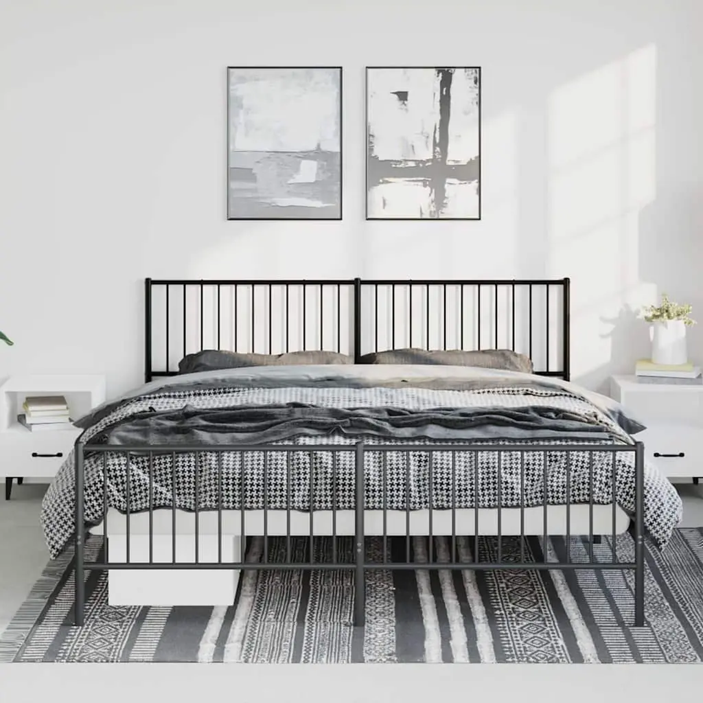 Vidaxl Bed Frame Black Powder-Coated Steel King Bed Frame Rectangular