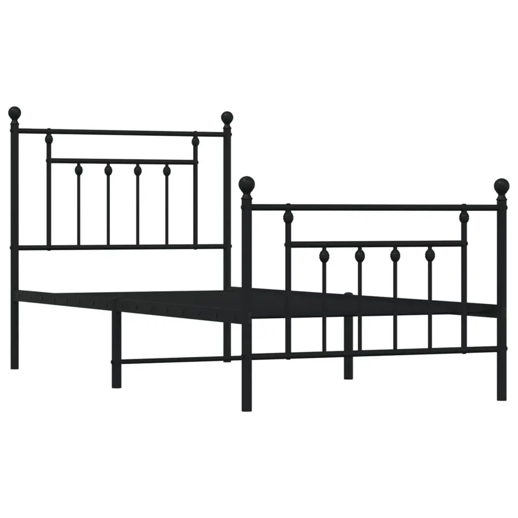 This metal bed frame is both stylish and practical, adding a touch of class while being tough enough for daily use. The combo of headboard and footboard in a sleek black finish makes it visually appealing and gives strong support for a good night's sleep. Robust Metal Frame: Made from powder-coated steel for great durability.Timeless Aesthetics: The lovely headboard and footboard add a cozy touch to any bedroom.Space Efficient: Perfectly sized for a single mattress, great choice for small spaces.Versatile Placement: Ideal for bedrooms and guest rooms, not just a bed but a stylish piece.Easy Maintenance: Just a quick clean keeps it looking smart, making it a lovely addition to your home decor.