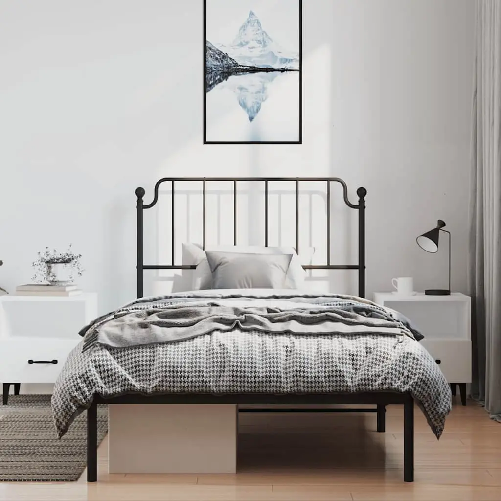 This black metal bed frame with a headboard gives you a stylish and solid base for a twin bed, perfect for sprucing up your bedroom while making sure you have a comfy place to sleep. Its sleek look mixes functionality and simplicity, fitting right into all sorts of bedroom styles, from modern to minimalist. Robust Steel Frame: Made from high-quality powder-coated steel, this bed frame is built to handle daily use while keeping its good looks. It'll be a mainstay in your bedroom for years to come.Breathable Material: The materials used not only keep things stable but also allow airflow, helping you stay cool and comfy while you sleep—essential for a good night’s rest.Classic Aesthetic: Its timeless black finish works well with any room’s decor, blending seamlessly into modern or traditional spaces. This versatility gives you the styling options you want without dropping quality.Ample Under-Bed Storage: The frame allows for plenty of space underneath, giving you the perfect chance to tidy up your bedroom or stash away seasonal items out of sight.Easy Assembly: Built with ease in mind, this bed frame is simple to put together with no special tools needed, making it accessible to anyone.