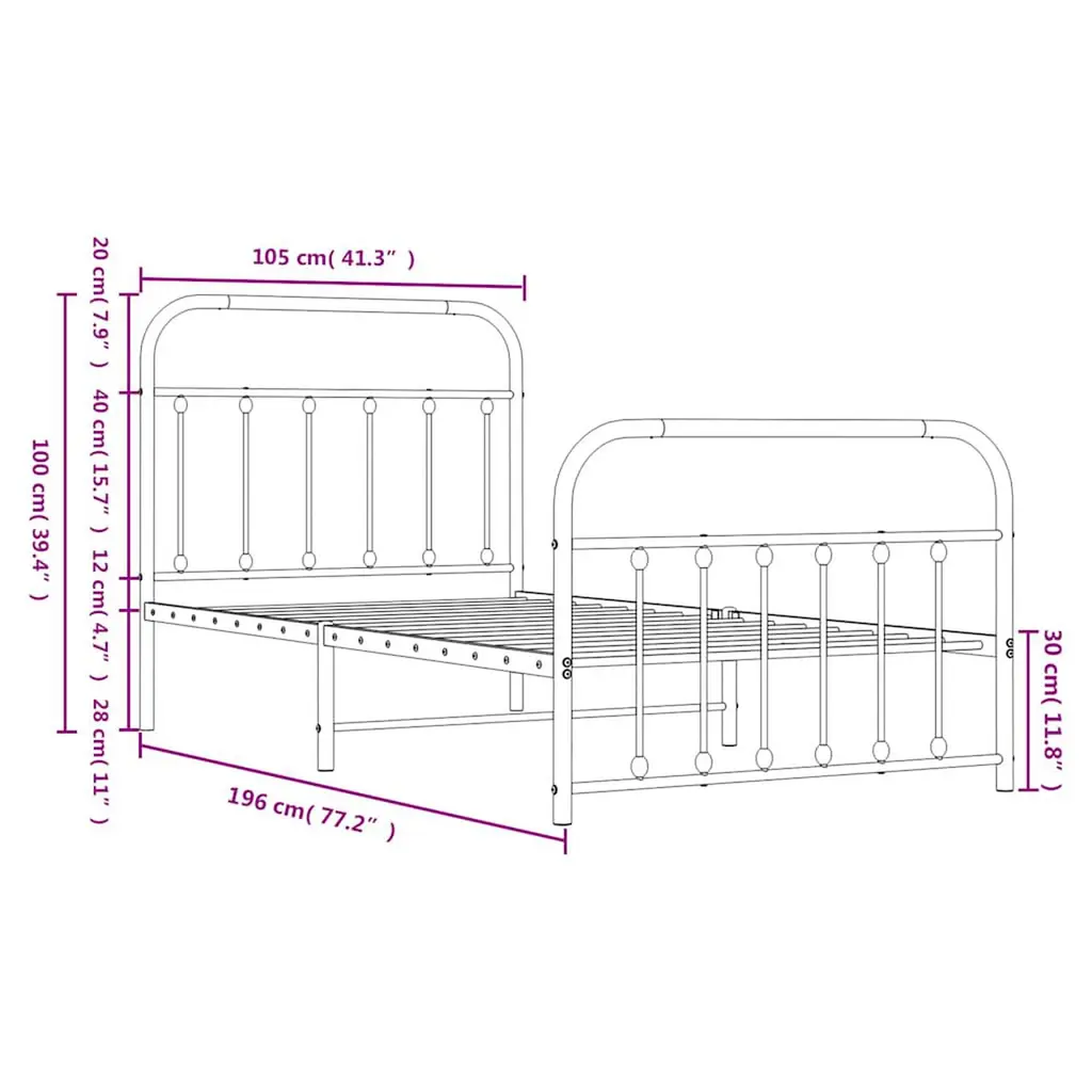 Vidaxl Bed Frame Black Powder-Coated Steel Twin Bed Frame Rectangular