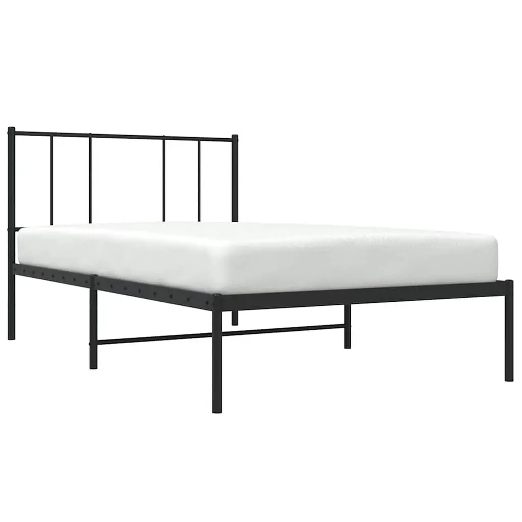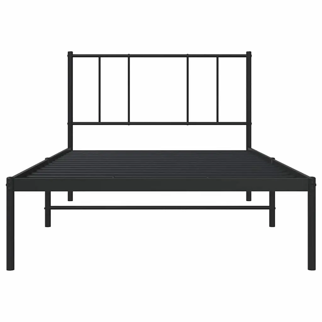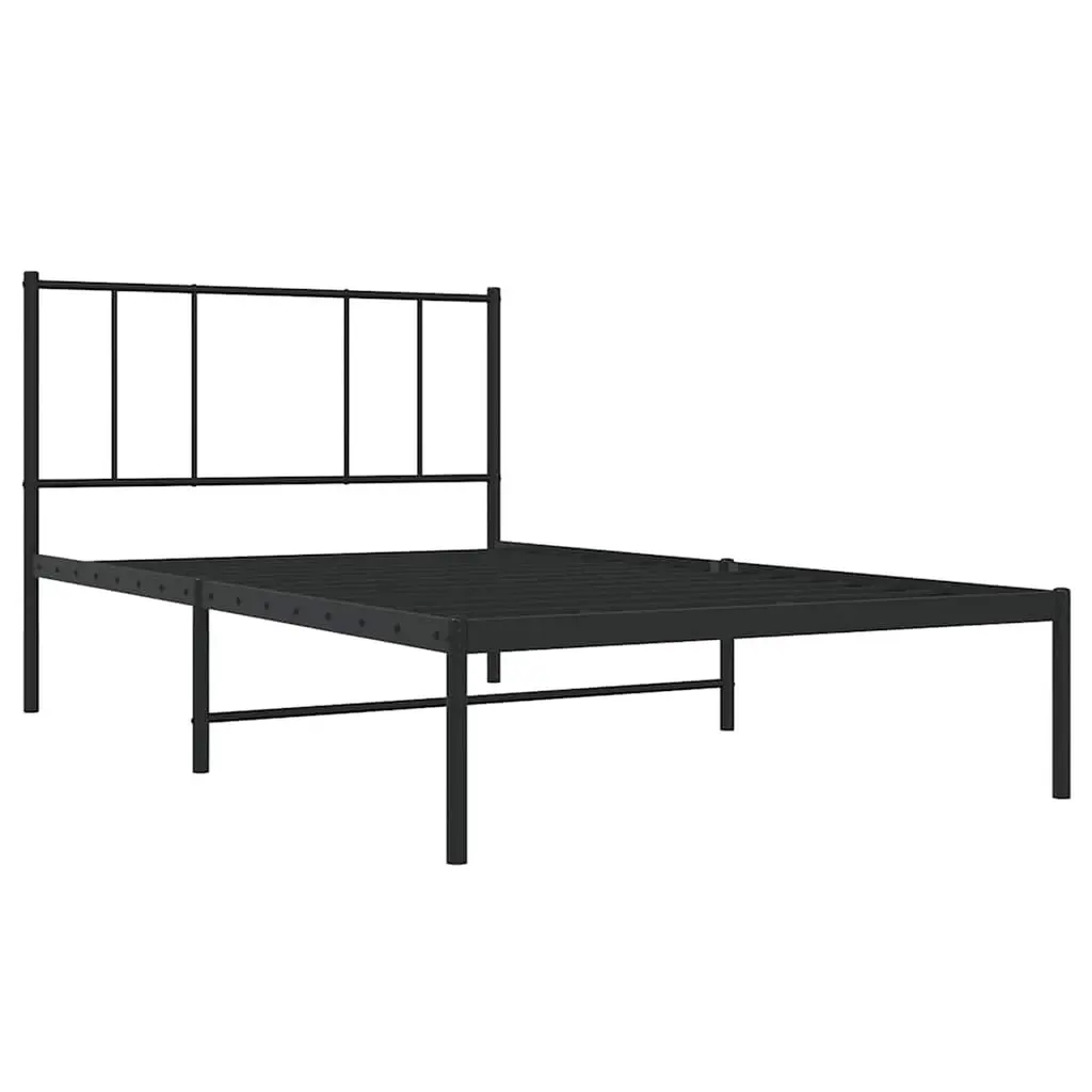 This twin metal bed frame mixes timeless style with modern functionality, making it spot on for contemporary bedrooms and guest spots. Its glossy black powder-coat finish and sleek lines bring a stylish touch, perfect for minimalist settings. Sturdy Build: Made from powder-coated steel, this bed frame is designed to hold one mattress comfortably for years. The strong materials withstand everyday use without falling apart, making it a smart buy for any home.Easy Cleaning: Designed for practicality, the shiny finish resists stains. A quick wipe with a damp cloth keeps your bed frame looking fresh, making it easy to maintain a healthy space.Chic Headboard: The headboard adds a touch of elegance, providing support while sitting up in bed, and framing your sleep area nicely. It supports your pillows or back while looking fab.Compact Dimensions: At 39.4 x 74.8 in, this bed frame is perfect for small rooms or guest bedrooms. It keeps the floor space open while being comfy for one person.Multi-Style Use: Whether in a modern, traditional, or minimalist setup, this black metal bed frame fits right in, making it a versatile choice for different spaces.