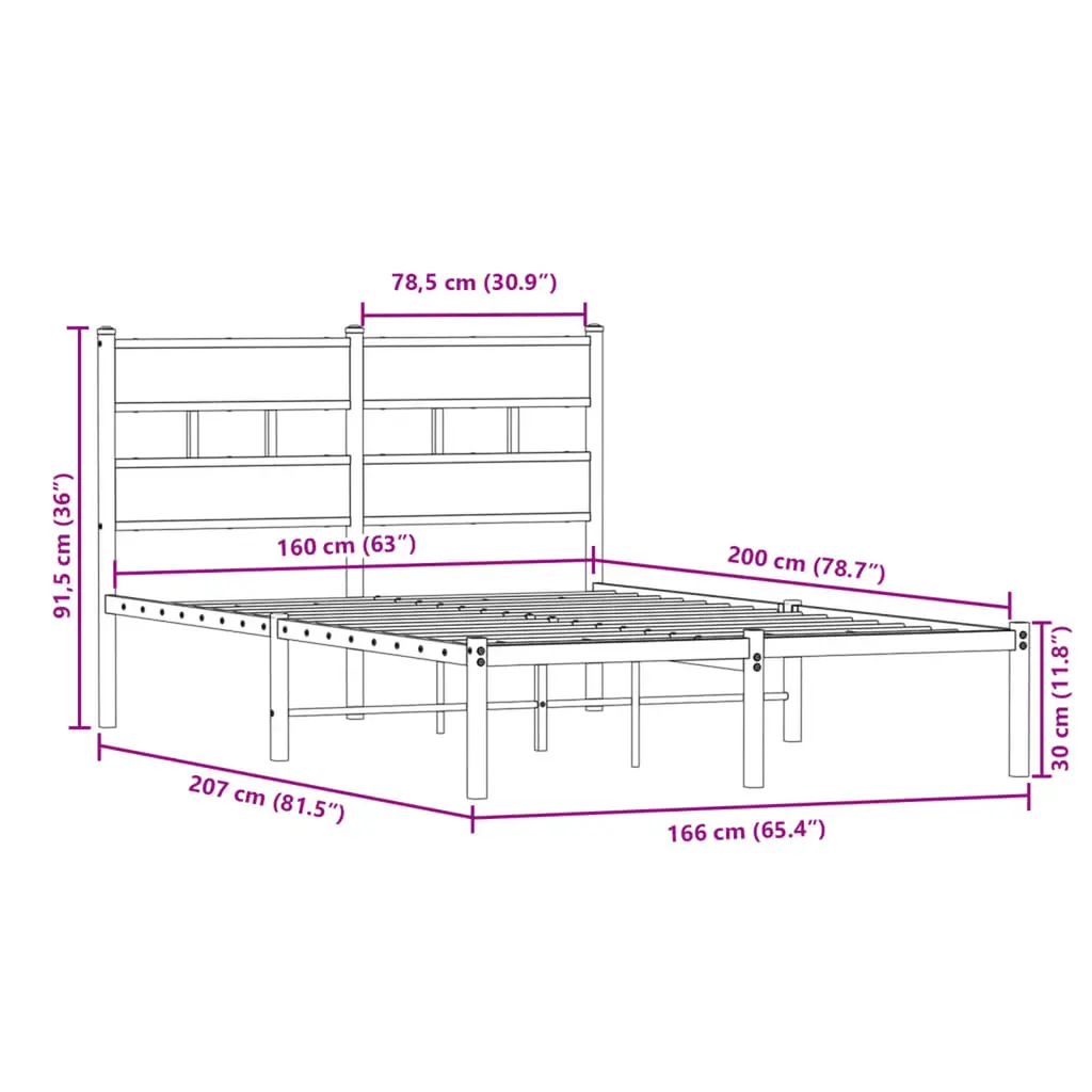 This industrial metal bed frame is the perfect mix of function and style, making it a great focal point for any modern bedroom. With a comfy double size of 63 x 79 in, it’s perfect for two people and adds a solid, factory vibe to your space. This sturdy bed frame is made of iron and engineered wood, giving you durability and stability with a maximum capacity of a double bed for two adults. The smoked oak finish looks stunning, boosting your living area's vibe while adding a modern twist to the classic bedroom look. With its handy headboard, this frame makes lounging comfy while you read or chill, making it great for daily use. The smooth surface is not only pleasing to the eye but also comfy to the touch, fitting perfectly with the industrial style. This design supports plenty of storage, perfect for smaller rooms even though it doesn’t have built-in storage compartments.
