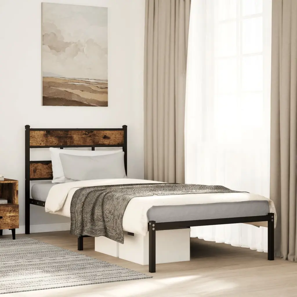 Vidaxl Bed Frame Black, Smoked Oak Iron, Engineered Wood Single