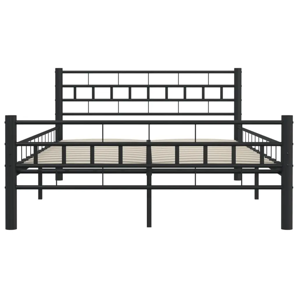 This bed frame is ideal for anyone who wants both style and practicality in their sleep space. The sleek black steel frame has a minimalist feel while being strong and durable — just what you need for a comfy bedroom or a chic guest room. Strong construction with a steel frame for lasting use and stability.Slatted base offers great support for mattresses, boosting sleep comfort.Matte finish looks classy and helps keep it clean from fingerprints and smudges.Easy assembly using just a screwdriver is all it takes.Ample dimensions of 55.1 x 78.7 in give plenty of room for a good night's sleep.