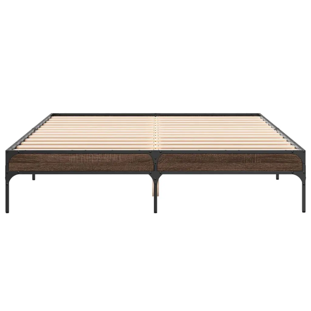 Vidaxl Bed Frame Brown Oak Engineered Wood And Metal Double Durable