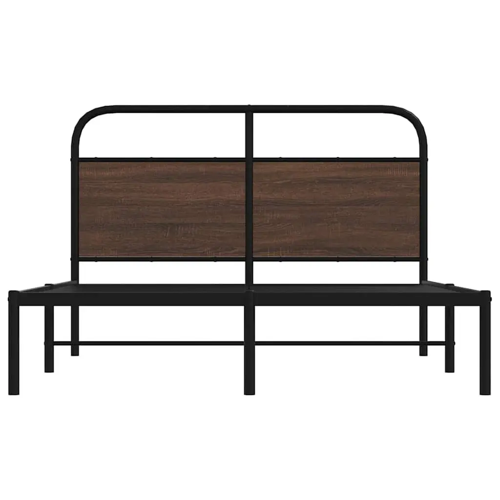 Vidaxl Bed Frame Brown Oak Engineered Wood And Steel 55.1 X 78.7 In
