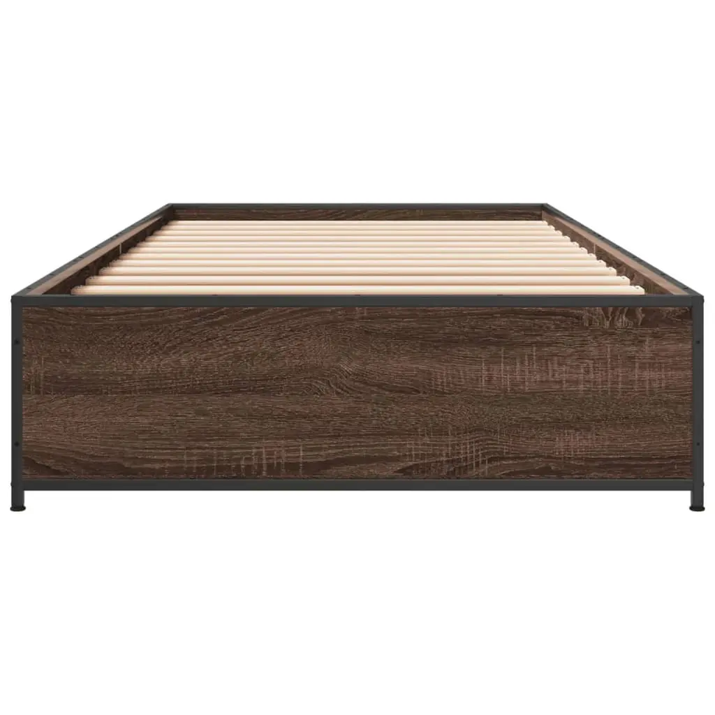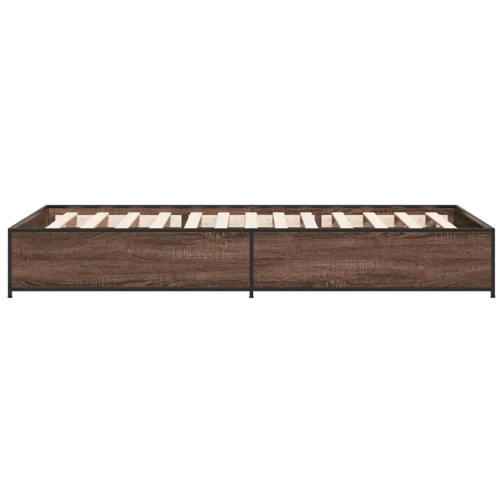 Vidaxl Bed Frame Brown Oak Engineered Wood, Metal, Plywood Single Tough