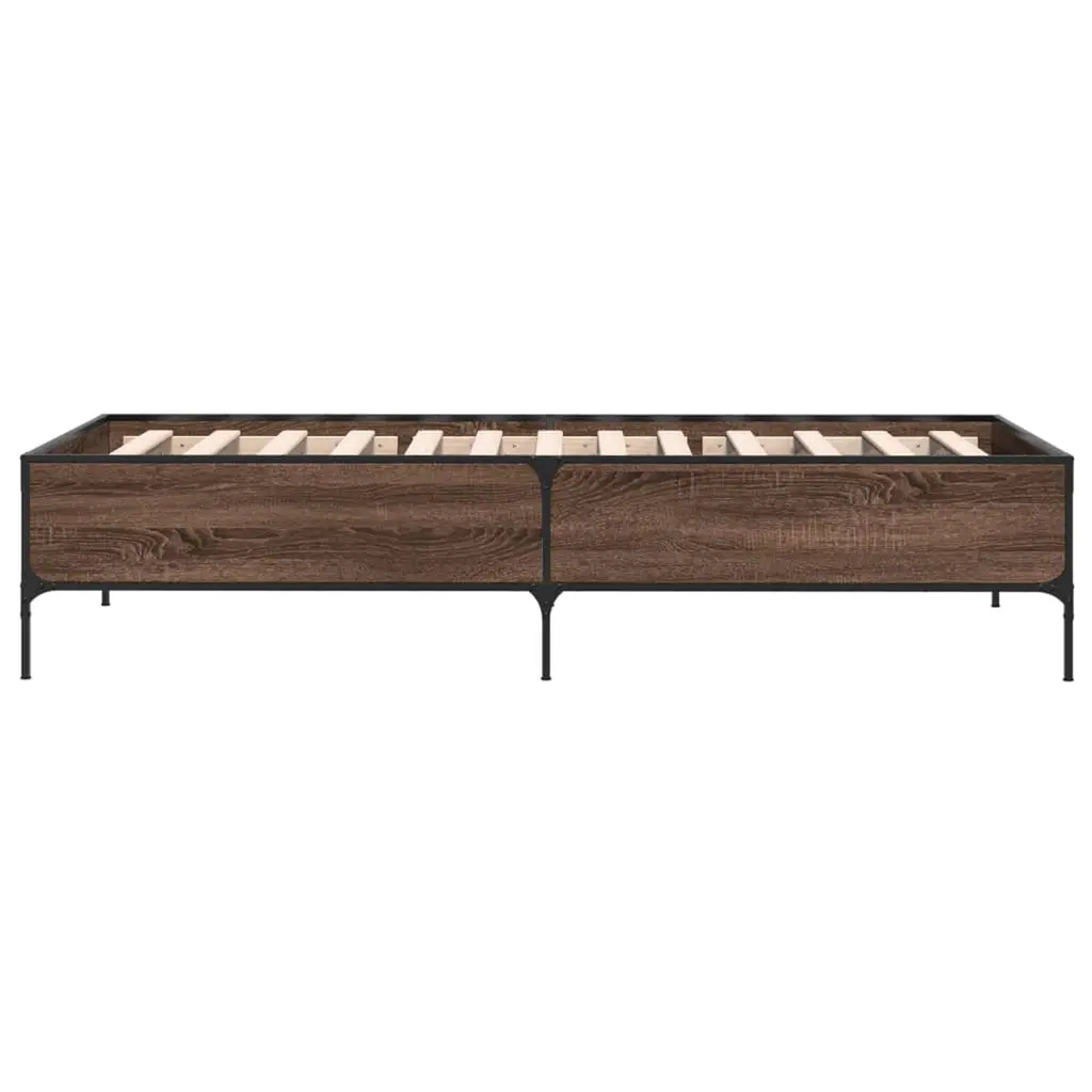 Vidaxl Bed Frame Brown Oak Engineered Wood, Metal, Plywood Small Single