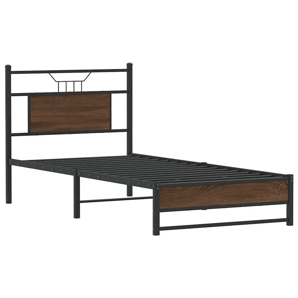 Vidaxl Bed Frame Brown Oak Engineered Wood, Steel Twin Bed Frame