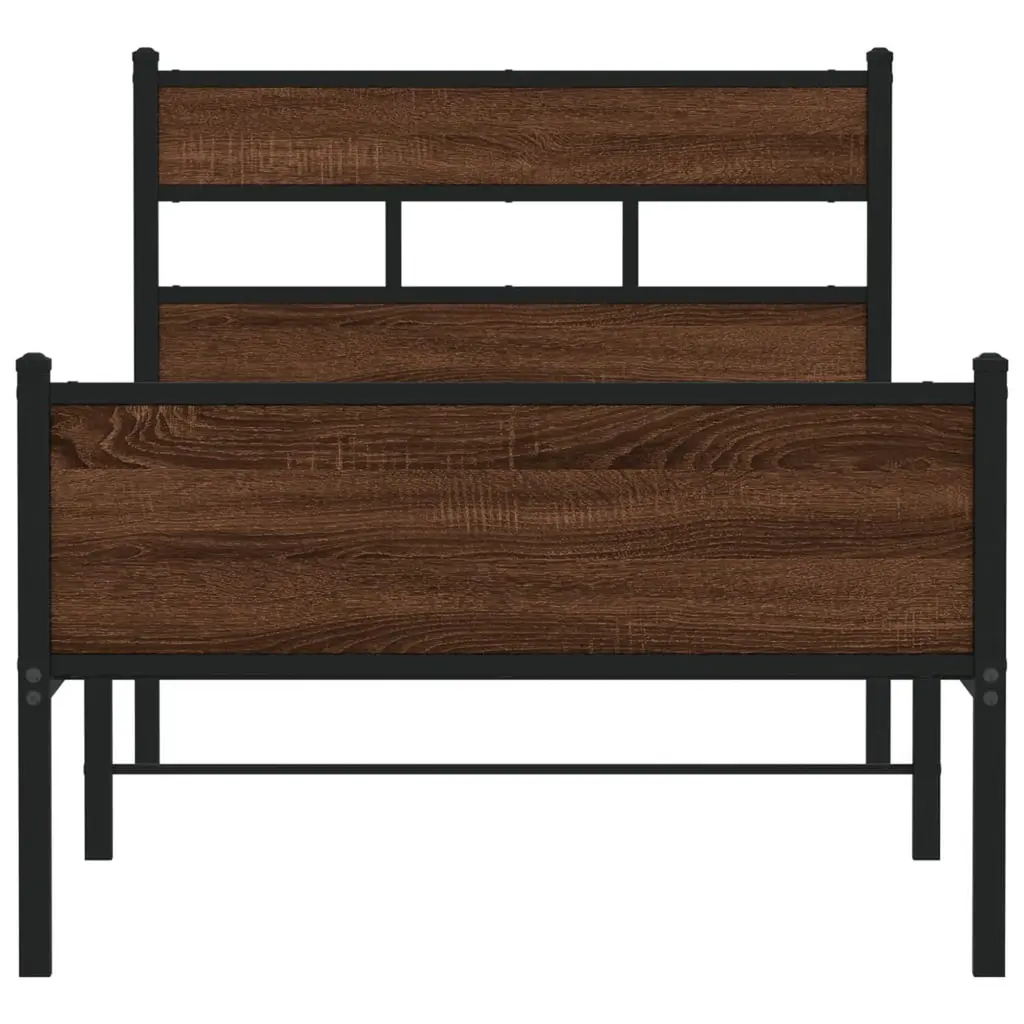Vidaxl Bed Frame Brown Oak Steel 39.4 X 78.7 In Single Bed Frame