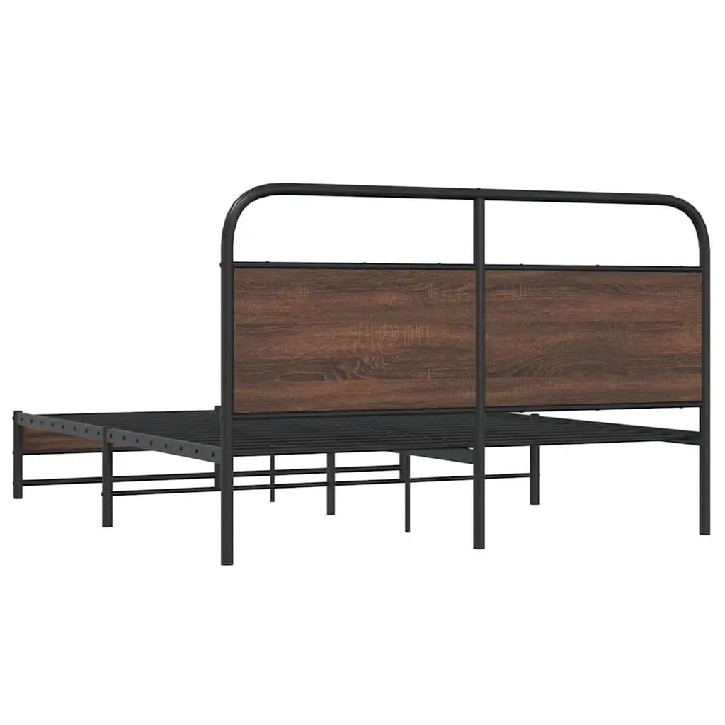 Vidaxl Bed Frame Brown Oak Steel, Engineered Wood Double Durable