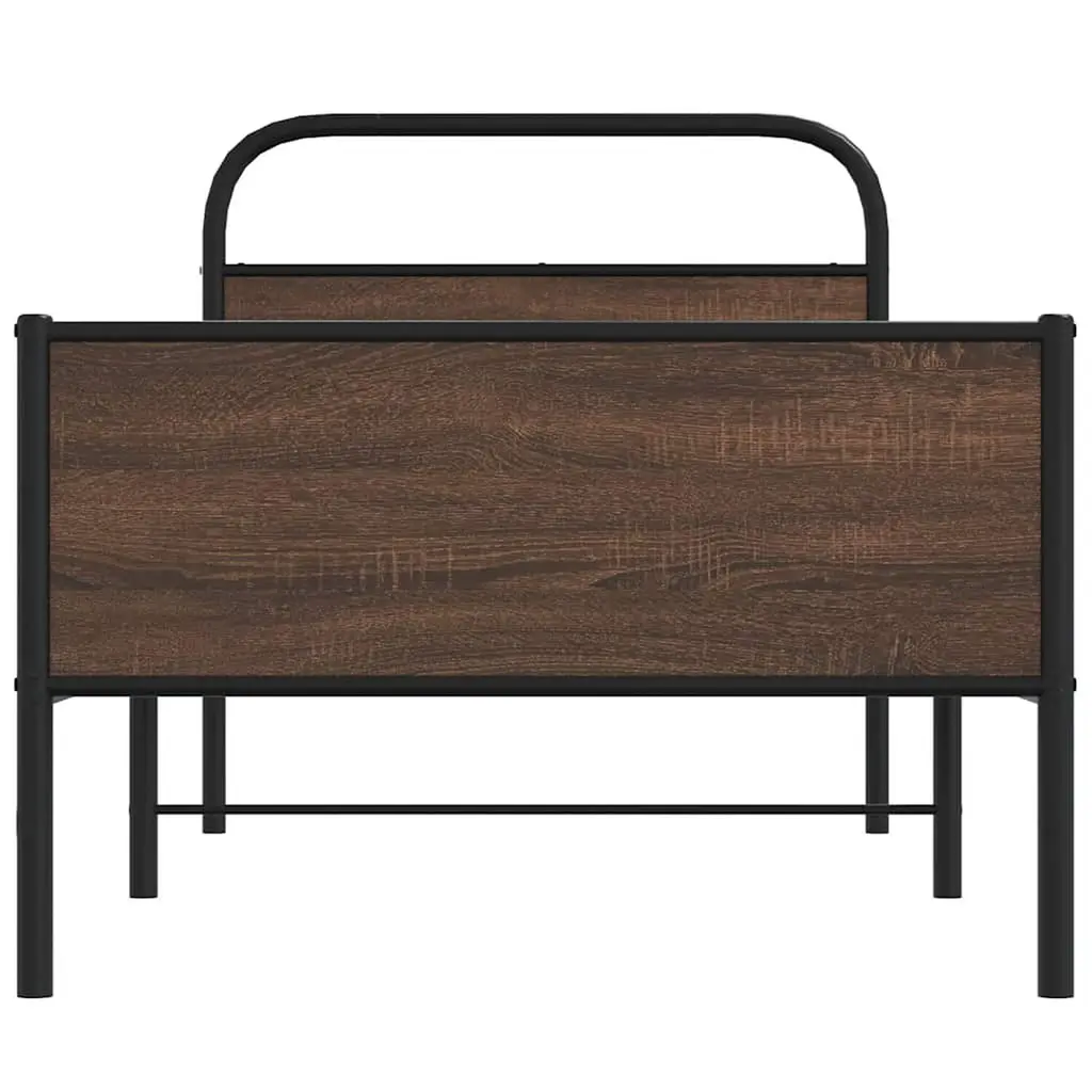 Vidaxl Bed Frame Brown Oak Steel, Engineered Wood Single Bed Frame