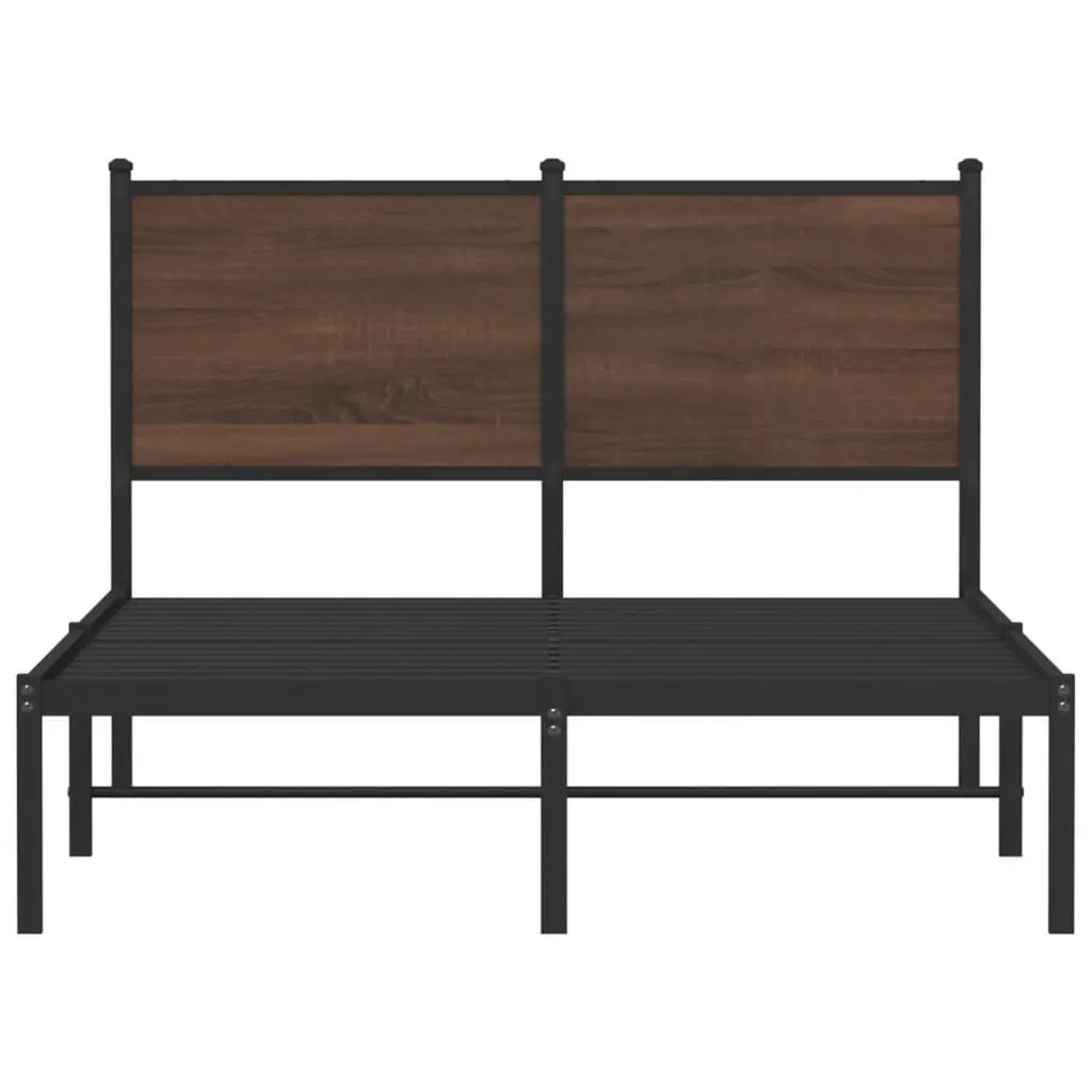 Vidaxl Bed Frame Brown Oak Steel, Engineered Wood Small Double Bed Frame