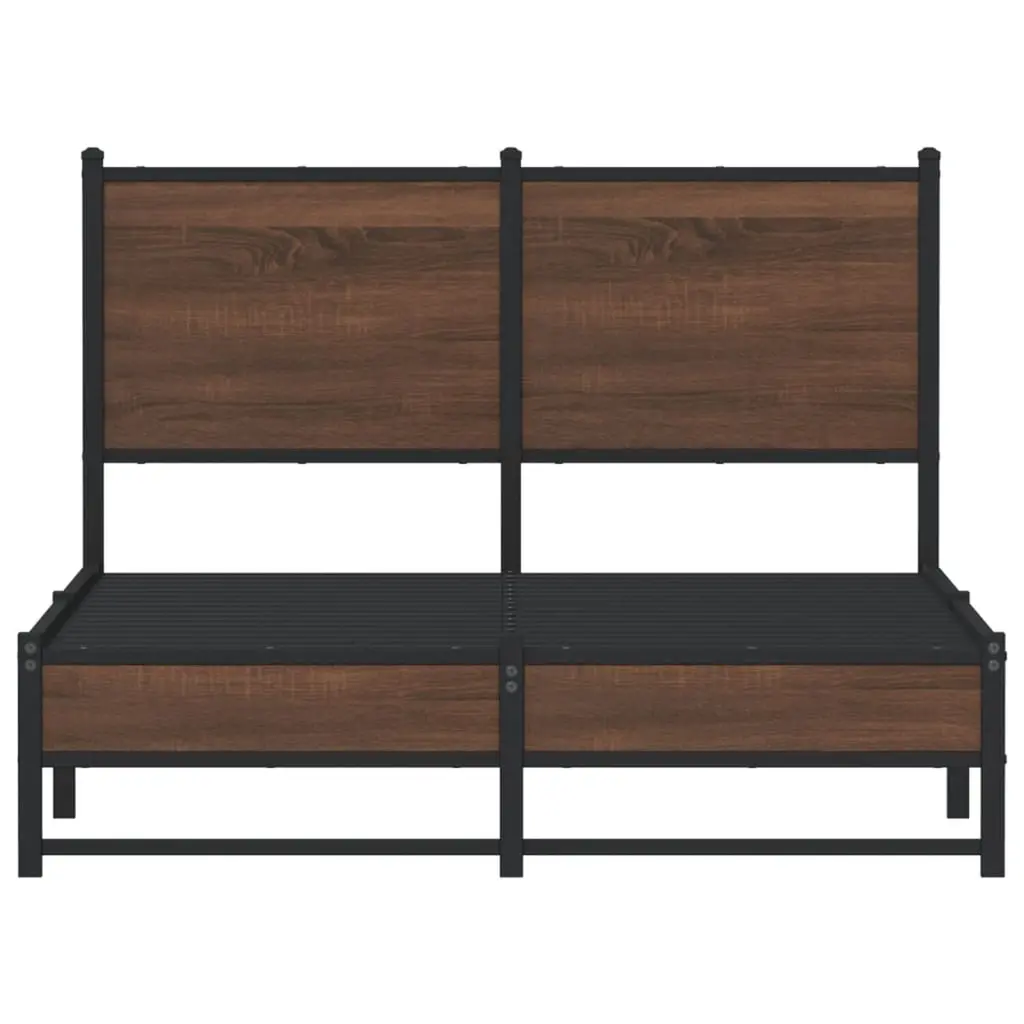 Vidaxl Bed Frame Brown Oak Steel, Engineered Wood Small Double Bed Frame