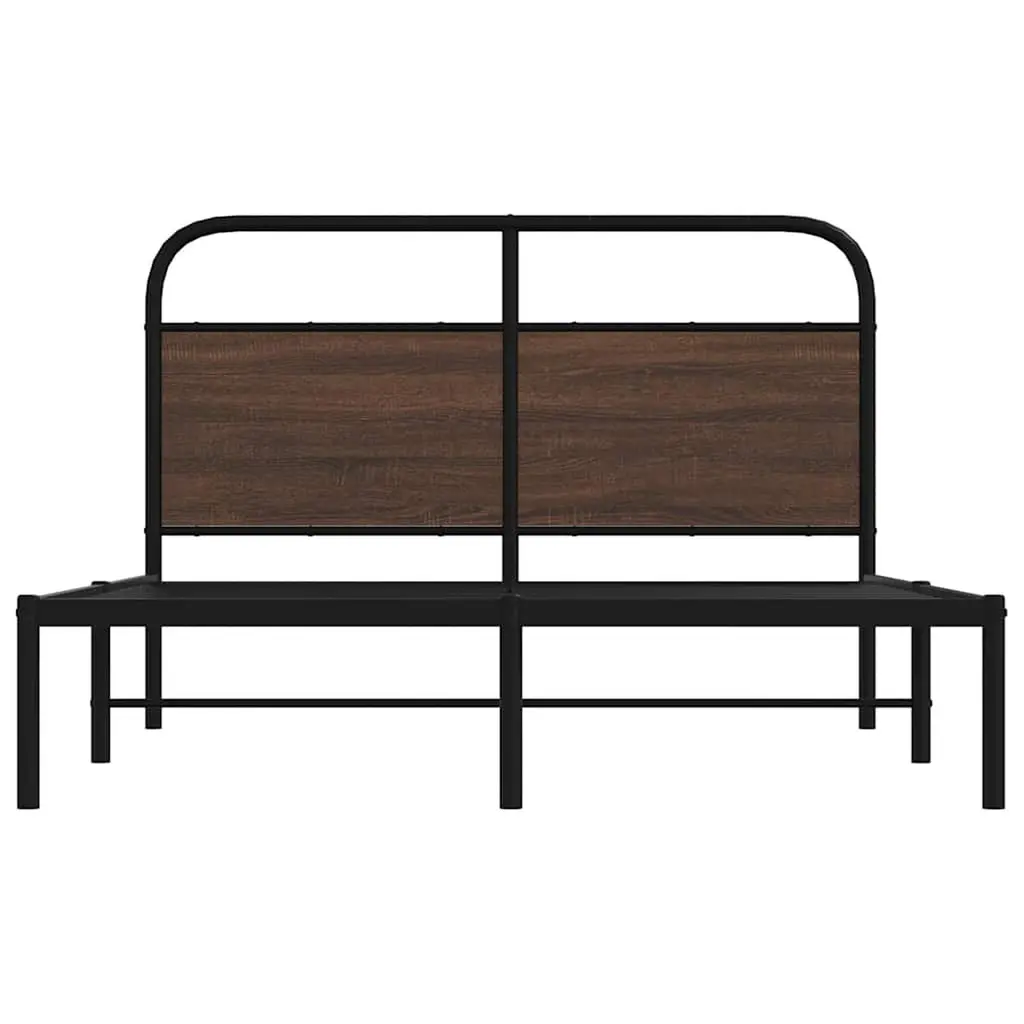 Vidaxl Bed Frame Brown Oak Steel, Engineered Wood Small Double Bed Frame