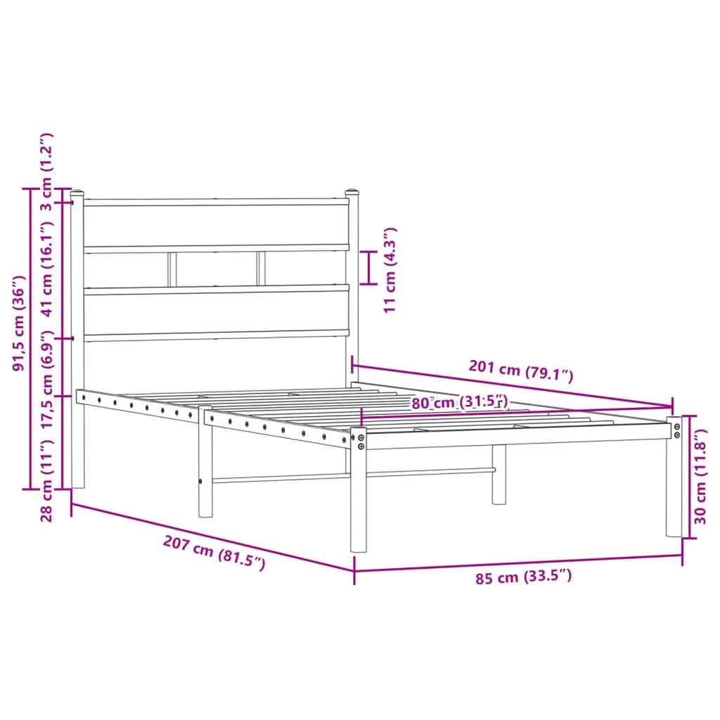 Vidaxl Bed Frame Brown Oak Steel, Engineered Wood Twin Bed Frame
