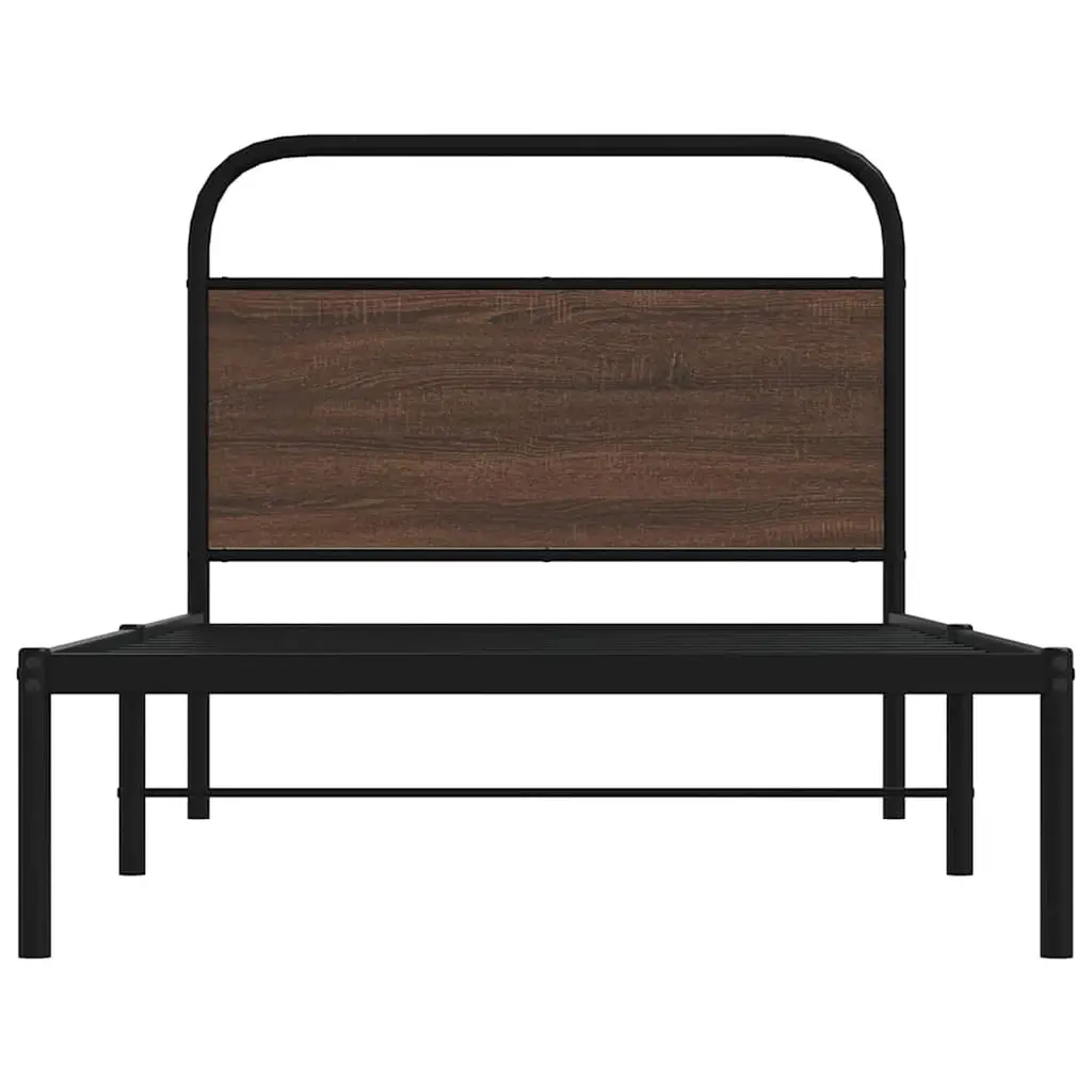 Vidaxl Bed Frame Brown Oak Steel Single Classic/traditional Bed Frame
