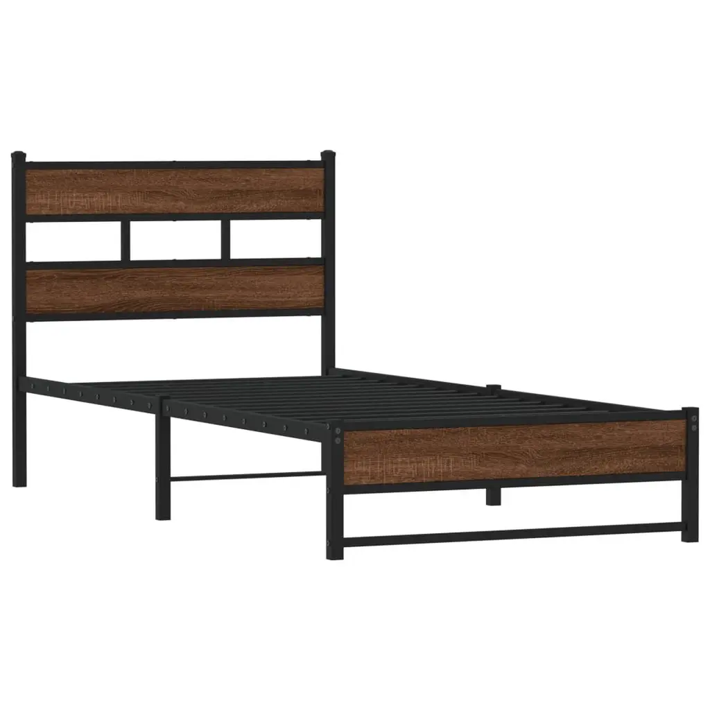 Vidaxl Bed Frame Brown Oak Steel Twin Modern Bed Frame Rectangular