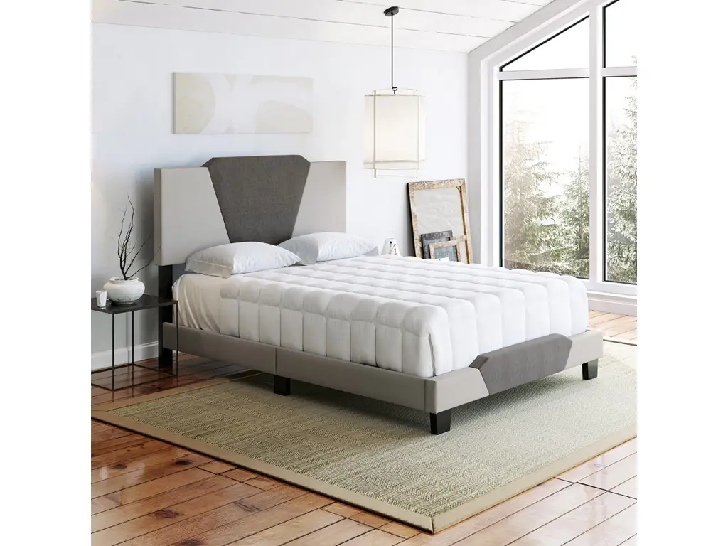This bed frame lifts the look of your bedroom with its modern shape and stylish dark gray fabric. It's all about comfort and style, providing a spacious queen-size area that's perfect for a restful night's sleep. Plus, its elegant finish complements a variety of bedroom decors, making it a fantastic centerpiece for anyone's retreat. Stylish Aesthetics: The sleek look of the bed frame meshes functionality with modern elegance, making it a great addition to any trendy bedroom. It keeps things simple while adding a touch of class to your space. Generous Storage: With loads of storage space, this bed frame features a discreet compartment for keeping extra linens or belongings, perfect for a tidy room. Comfort with Breathability: Upholstered in top-quality, breathable fabric, the bed frame creates a fresh and relaxing atmosphere, letting you unwind easily after a long day. Robust Structure: Built with solid pine wood and a strong design, this bed frame is made to last, ensuring durability for years while still providing comfort. Versatile Use: Made for indoor use only, this stylish piece fits both small and large spaces, perfect for adults seeking both style and comfort in their homes.